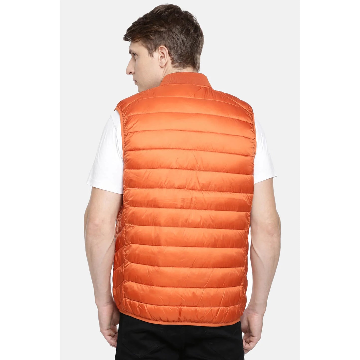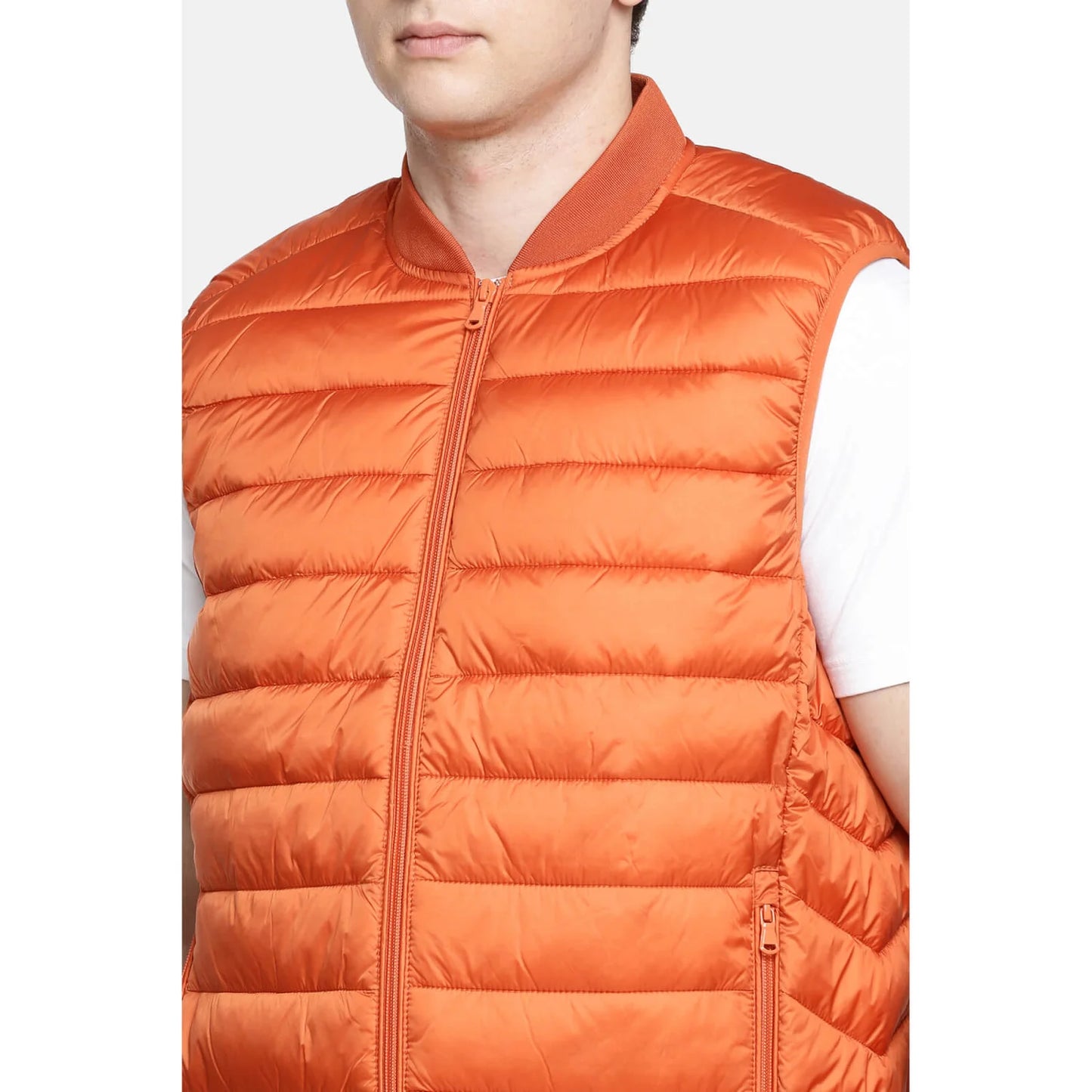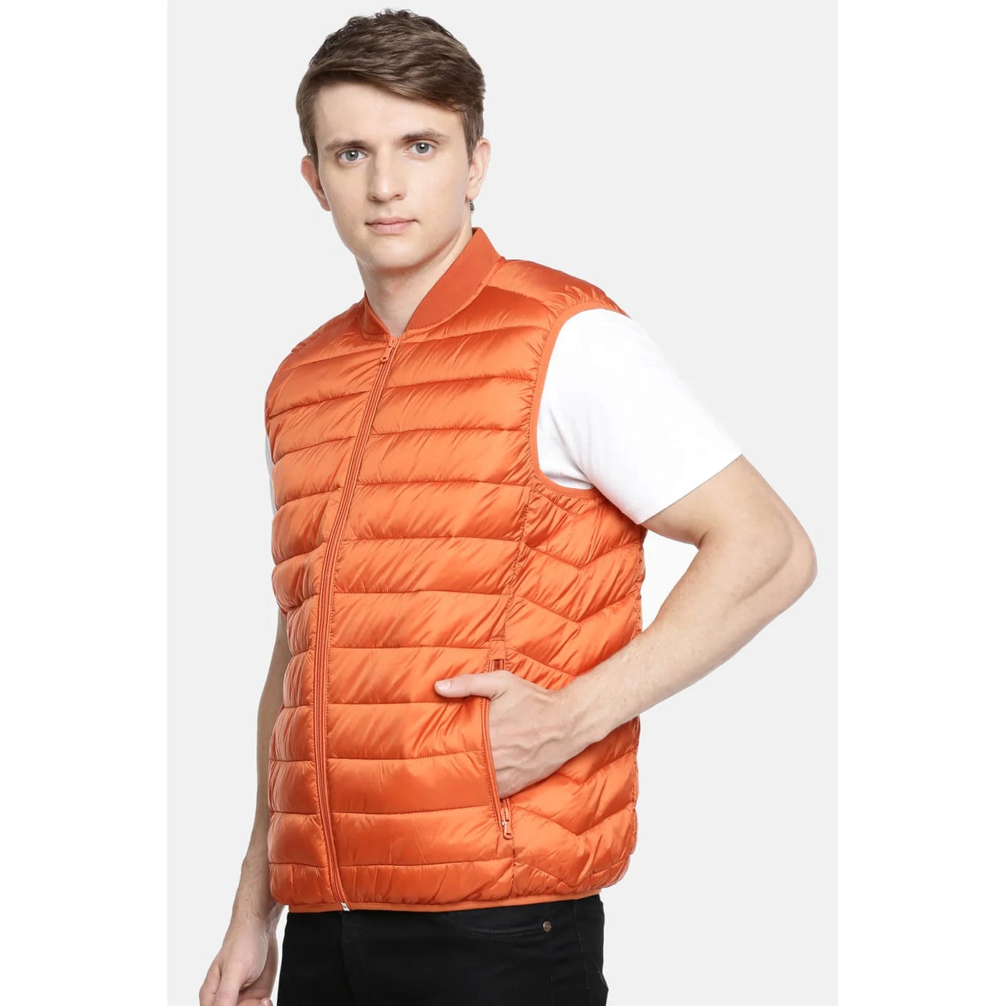 Celio Men's Orange Gilet in burnt orange offers a casual look. Made from durable nylon, this sleeveless design ensures comfort and style for any occasion. Disclaimer: All other items in the image are only for display purposes and will not be a part of the delivery content. Product colour may slightly vary due to photographic lighting sources. Country of Origin - India.