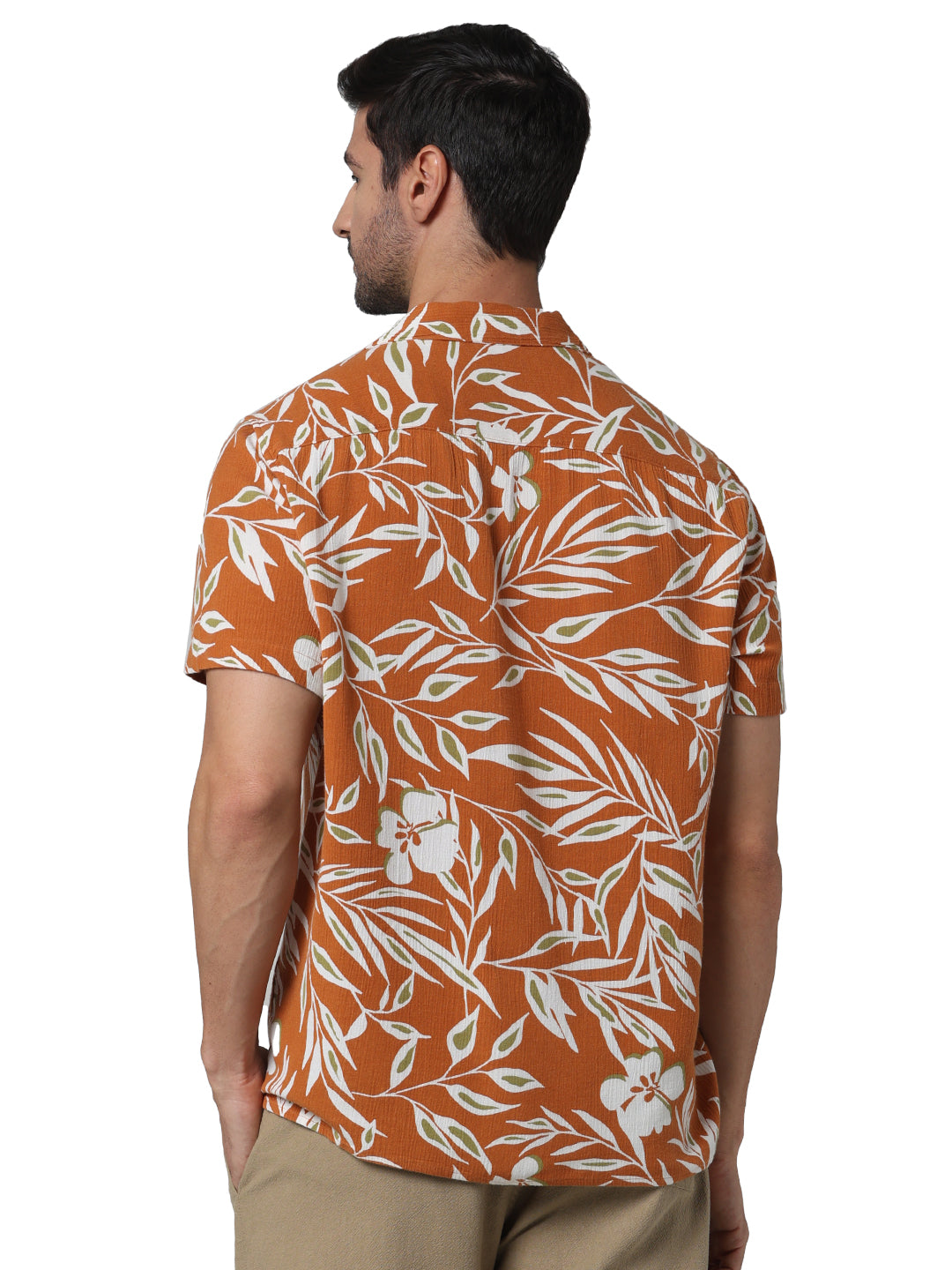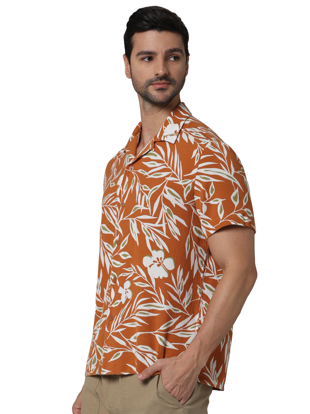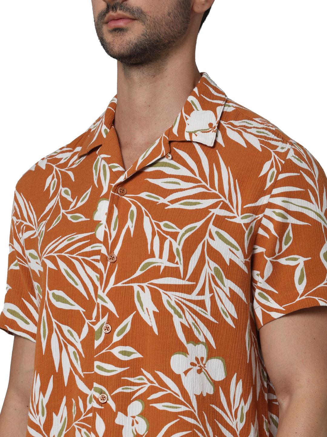 Celio* Printed Regular Fit Viscose Orange Shirt