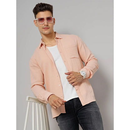 Celio* Solid Regular Fit Cotton Peach Shirt