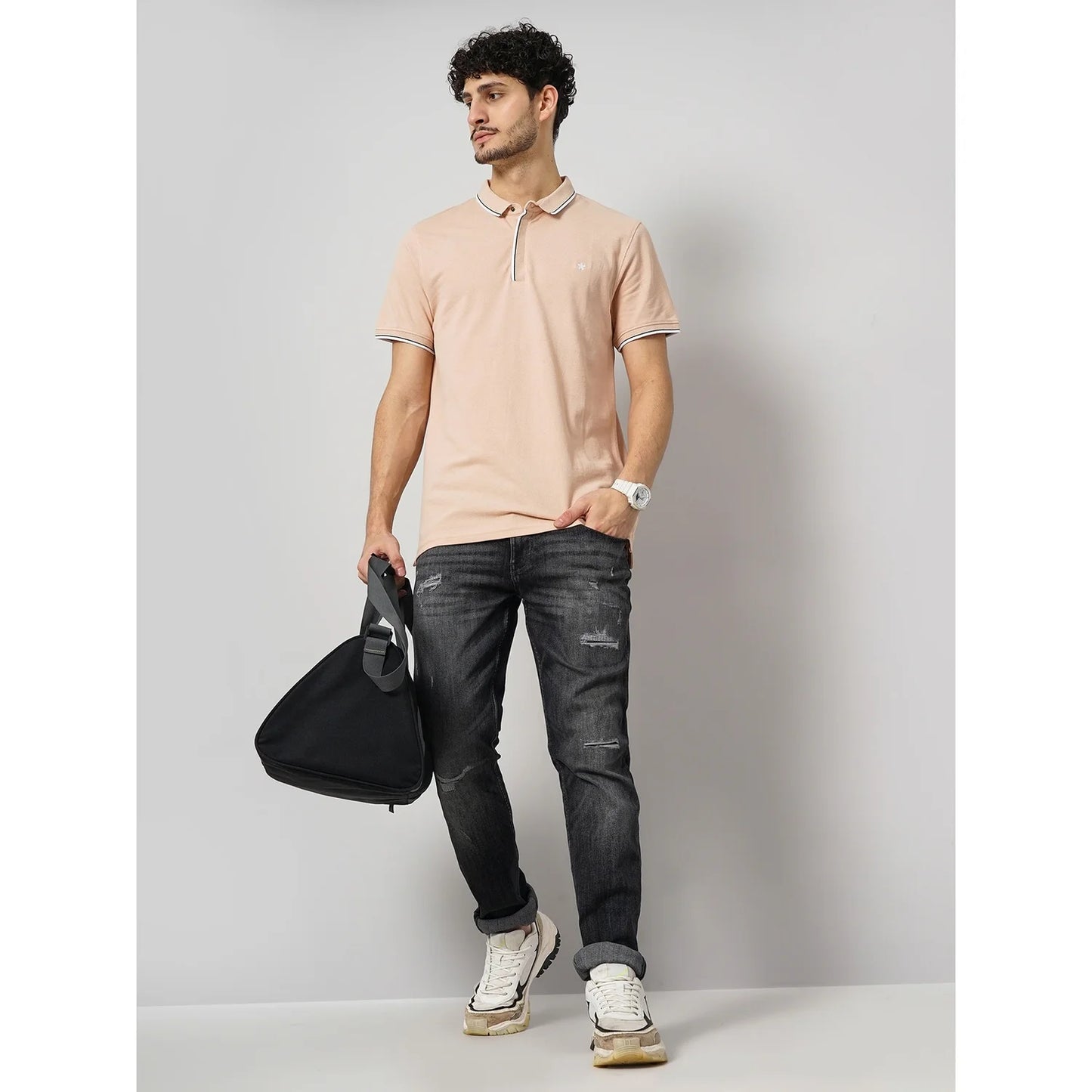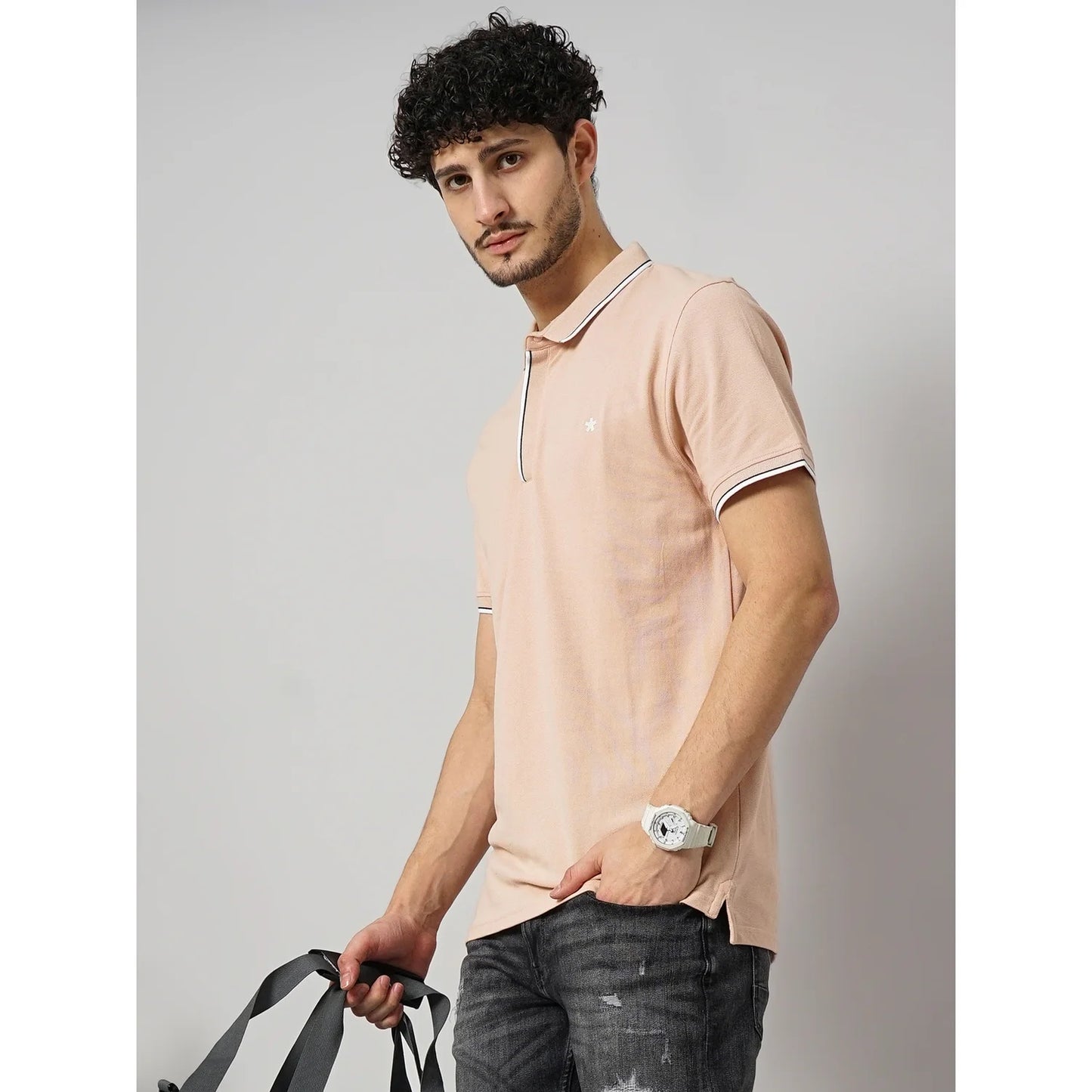 Celio* Solid Regular Fit Cotton Peach T-Shirt