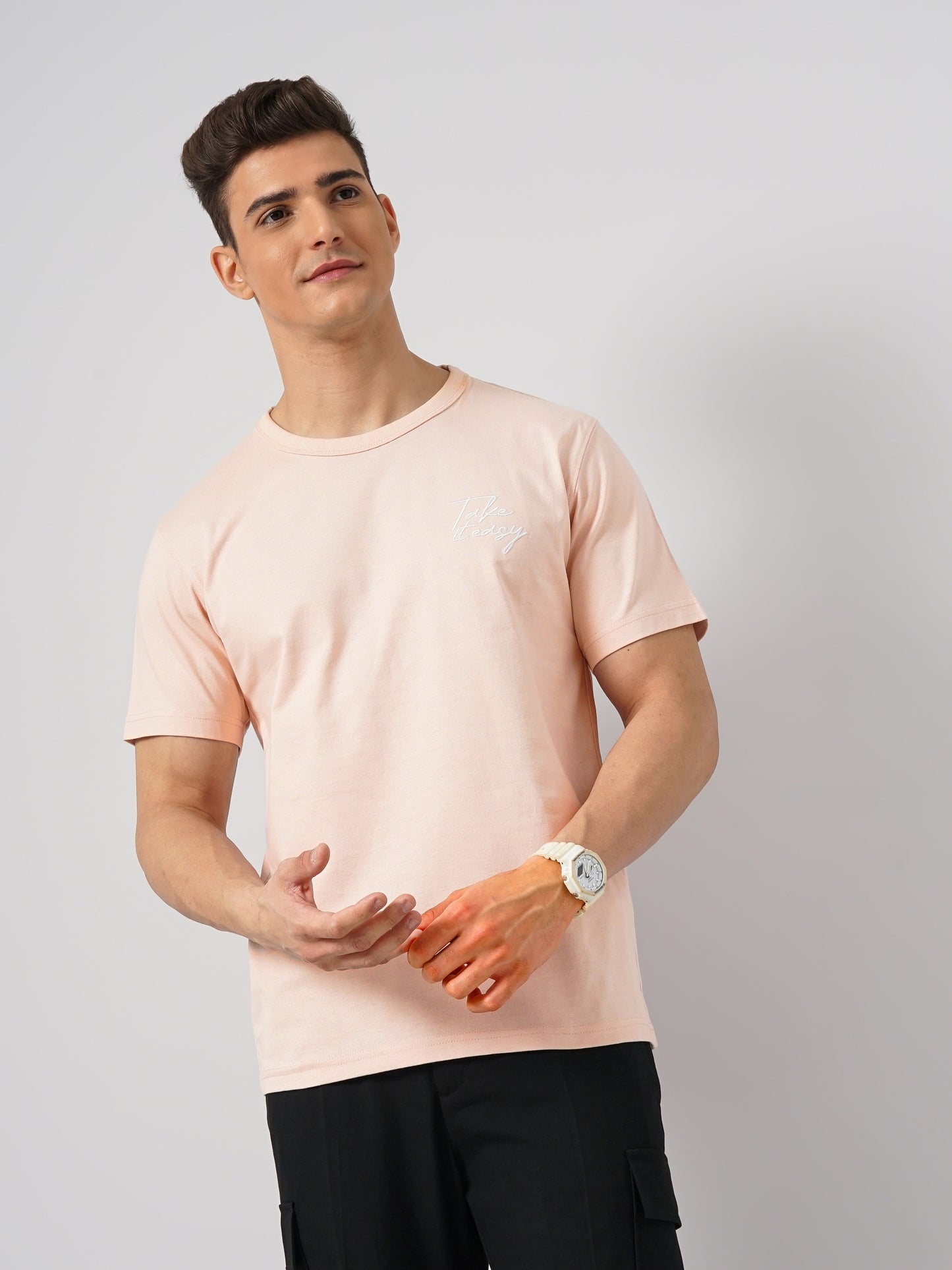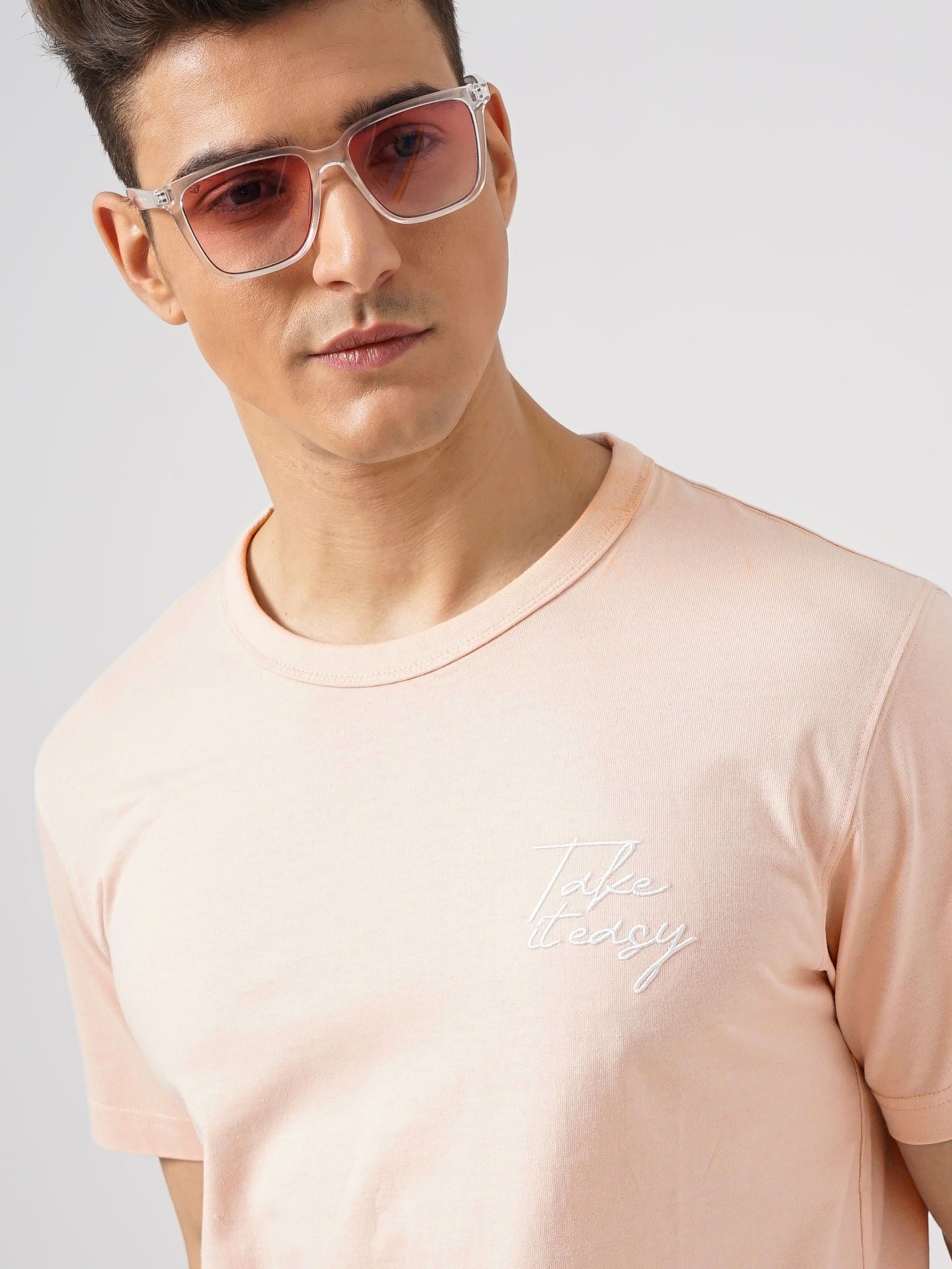 Elevate your casual wardrobe with Celio's Men peach Round Neck T-shirt, crafted from soft cotton for comfort. Featuring a regular fit and short sleeves, it's perfect for laid-back occasions. Disclaimer: All other items in the image are only for display purposes and will not be a part of the delivery content. Product colour may slightly vary due to photographic lighting sources. Country of Origin - India.