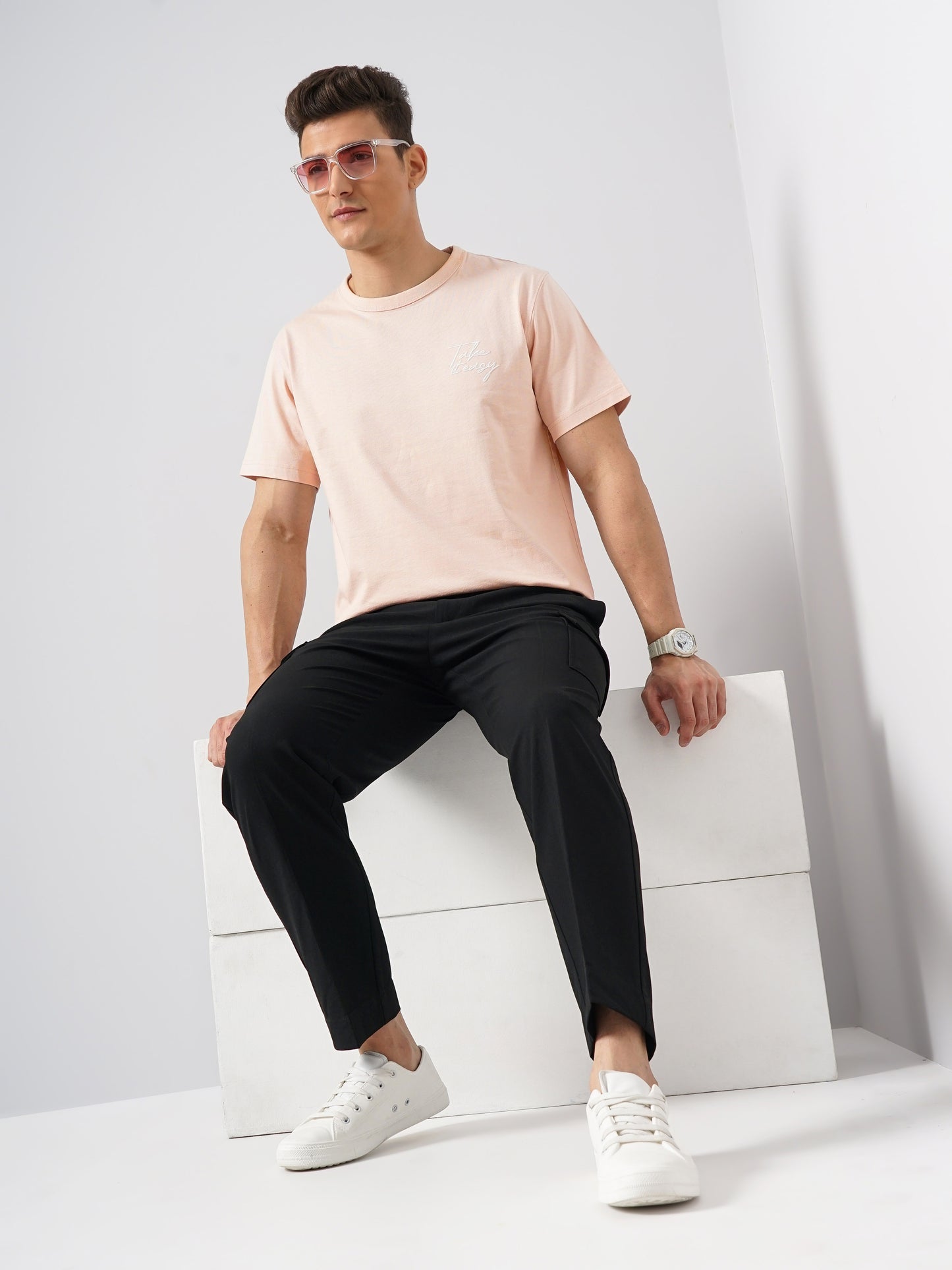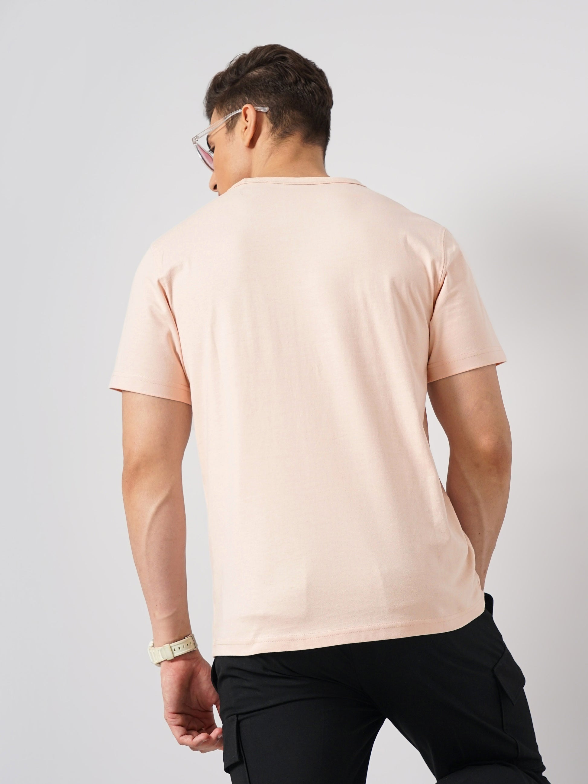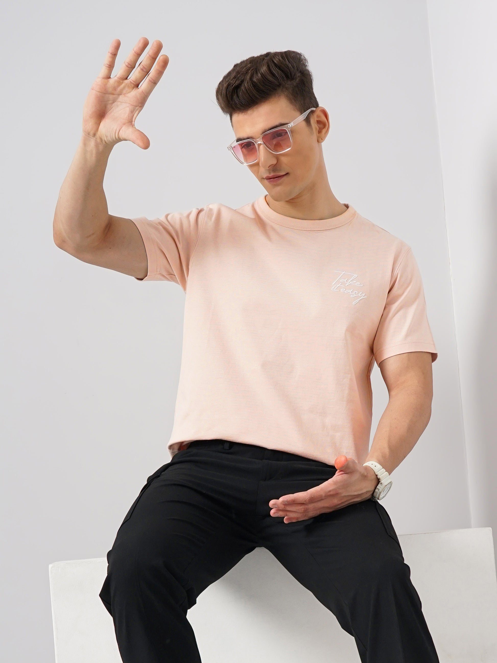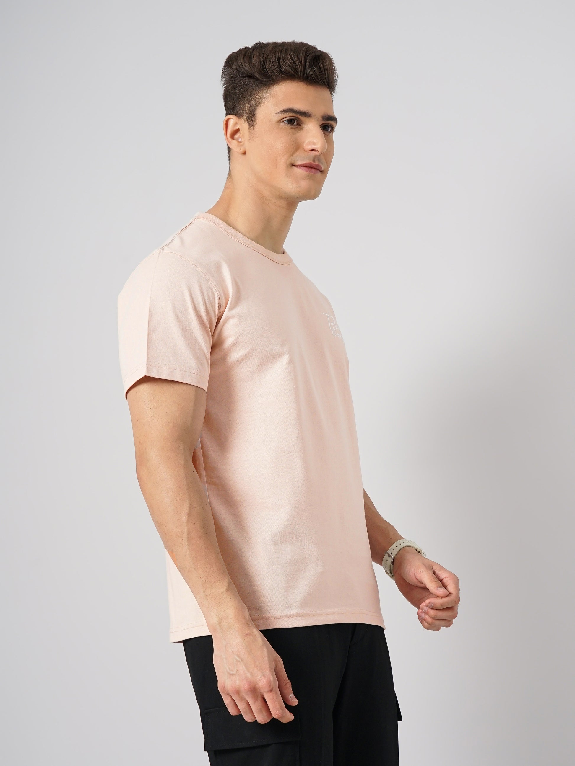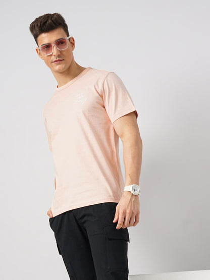 Celio* Solid Regular Fit Cotton Peach T-Shirt