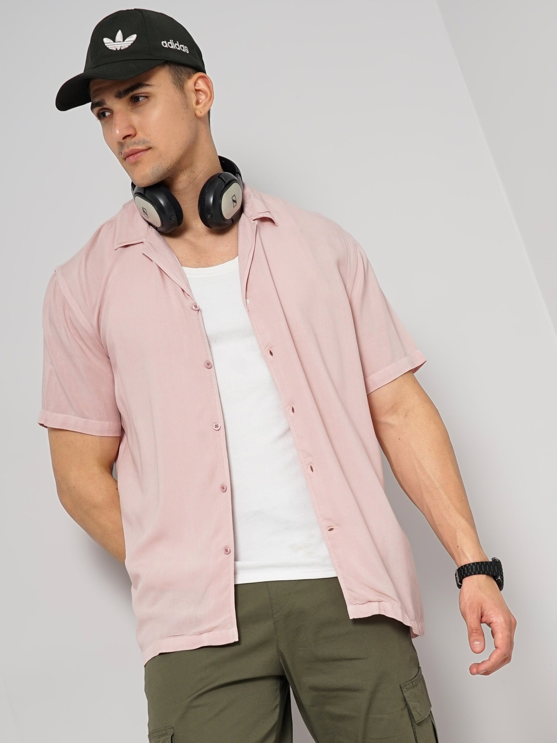 Celio* Men Peach Solid Regular Fit Viscose Shirts