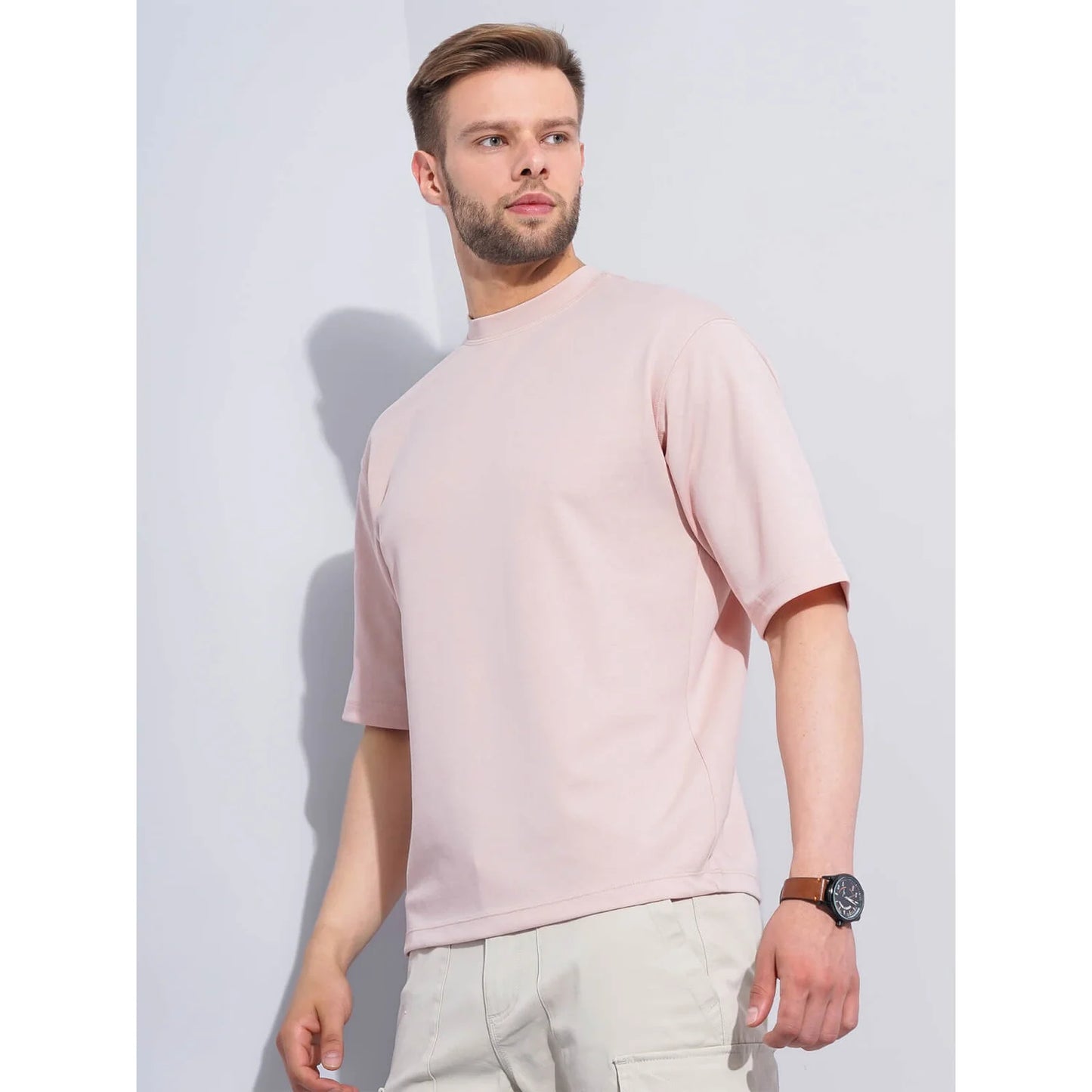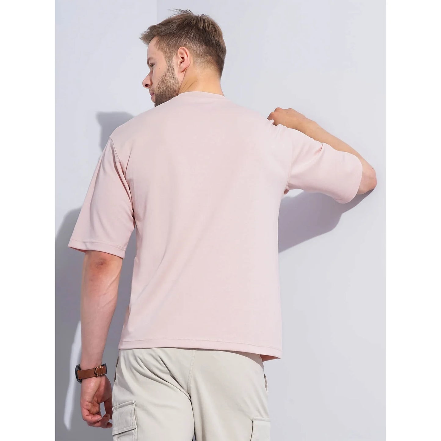 Elevate your casual wardrobe with the Celio Pink Solid T-shirt. Crafted from a comfortable cotton blend, this elbow-sleeve tee is perfect for men seeking style and ease. Disclaimer: All other items in the image are only for display purposes and will not be a part of the delivery content. Product colour may slightly vary due to photographic lighting sources. Country of Origin - India.