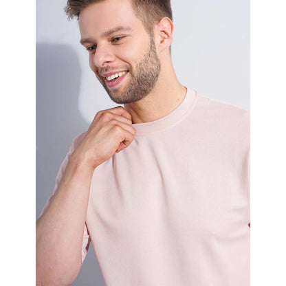 Celio* Solid Regular Fit Cotton-Blend Pink T-Shirt