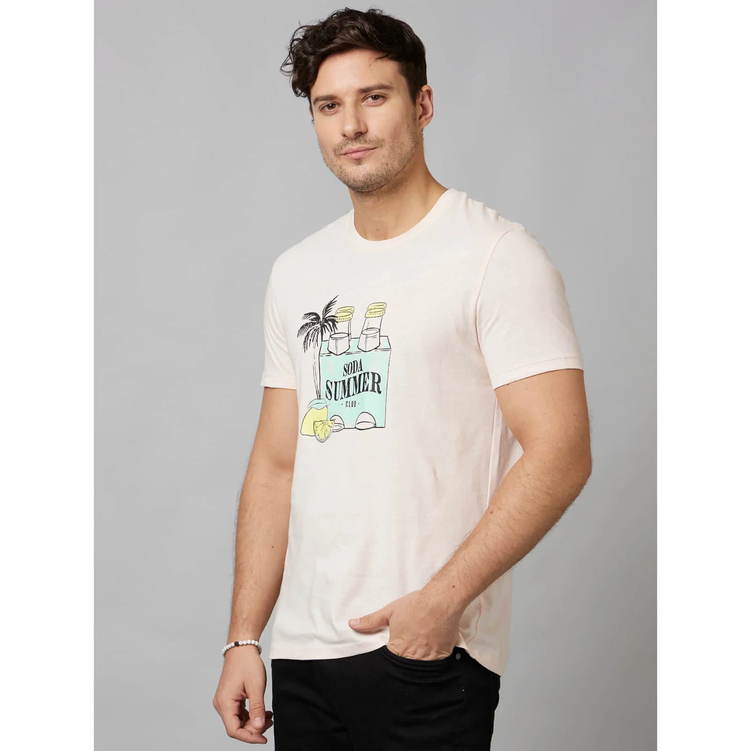 Celio* Graphics Regular Fit Cotton Pink T-Shirt