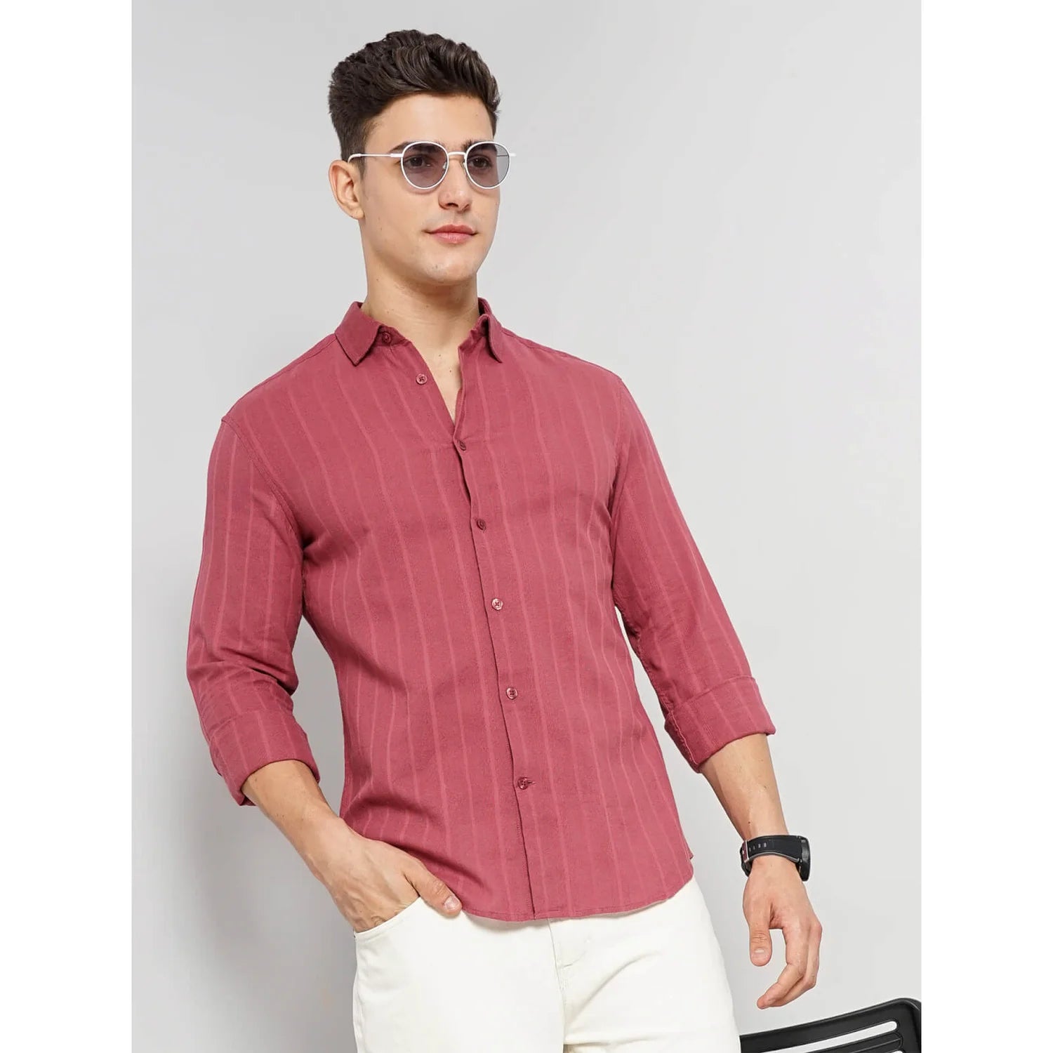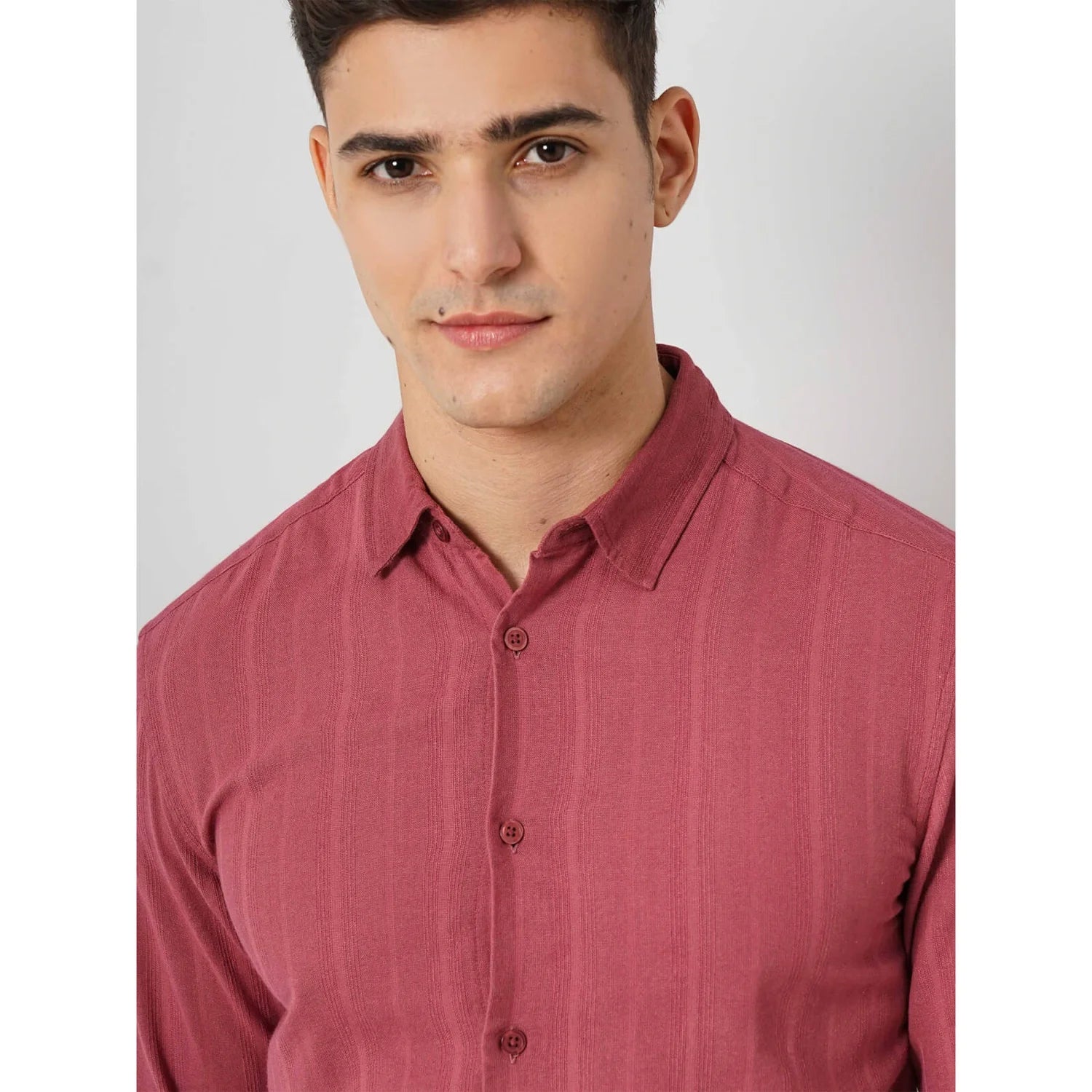 Elevate your casual wardrobe with the Celio Self-Design Pink Cotton Shirt. This long sleeve shirt features a pinky hue, crafted from comfortable cotton, perfect for men. Disclaimer: All other items in the image are only for display purposes and will not be a part of the delivery content. Product colour may slightly vary due to photographic lighting sources. Country of Origin - India.