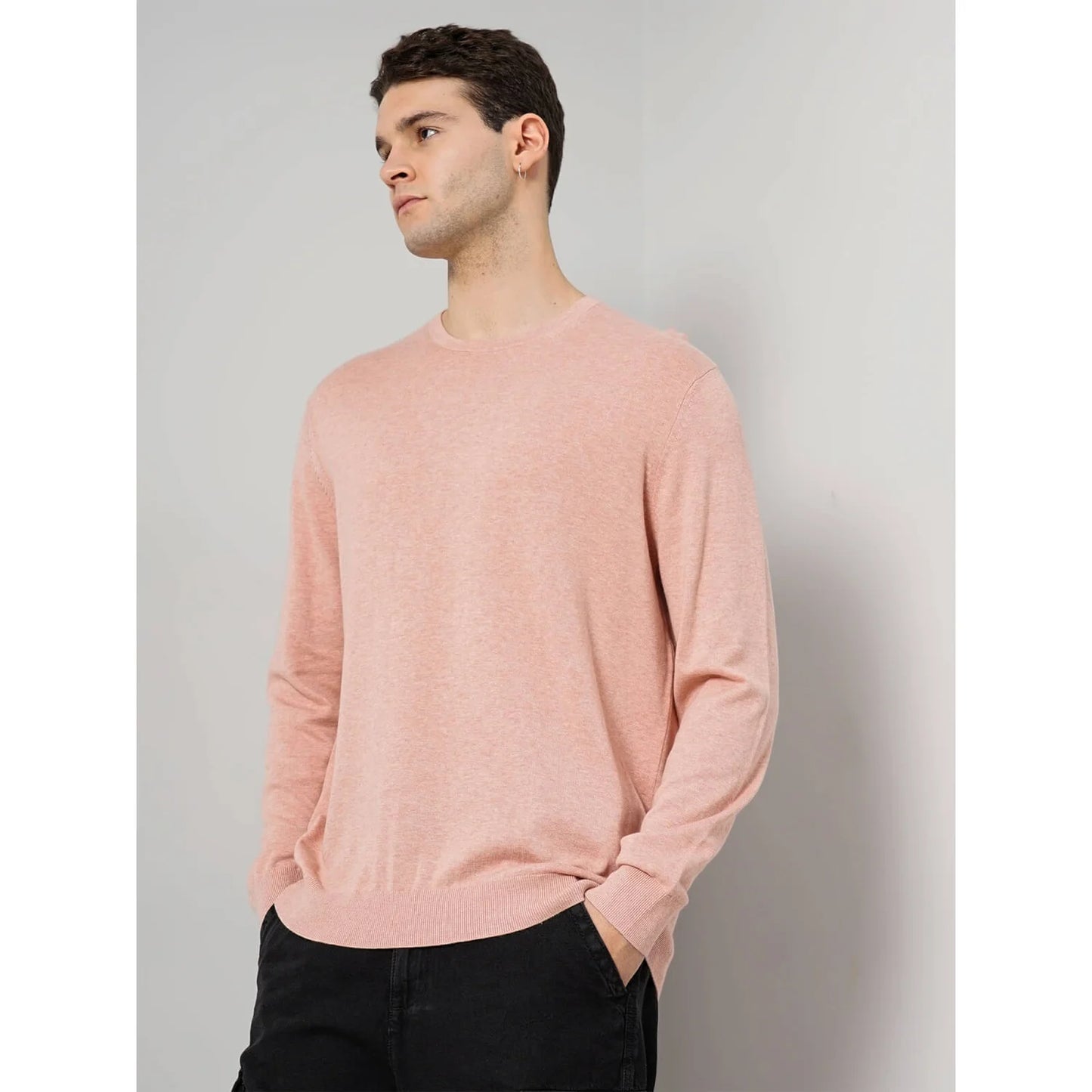 Elevate your casual wardrobe with the Celio Cotton Pink Solid Sweater. Crafted from comfortable cotton, this long-sleeve sweater in Pink is perfect for men, offering style and versatility. Disclaimer: All other items in the image are only for display purposes and will not be a part of the delivery content. Product colour may slightly vary due to photographic lighting sources. Country of Origin - India.