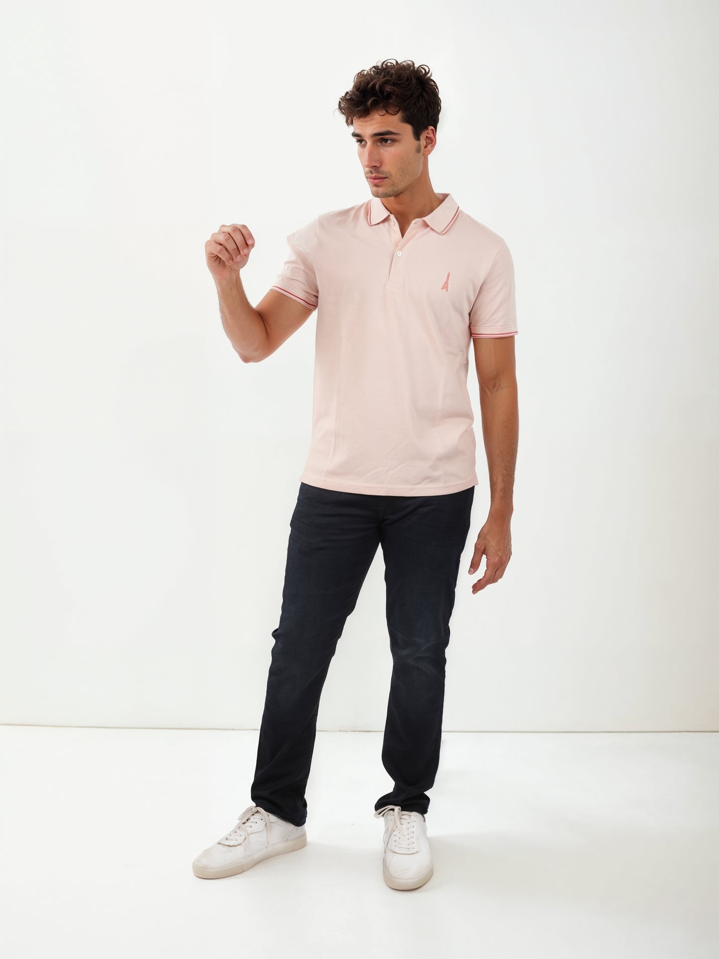 Elevate your casual wardrobe with the Celio Men Pink Polo. Made from soft cotton, this regular fit t-shirt features short sleeves and a classic polo collar for a stylish look. Disclaimer: All other items in the image are only for display purposes and will not be a part of the delivery content. Product colour may slightly vary due to photographic lighting sources. Country of Origin - India.