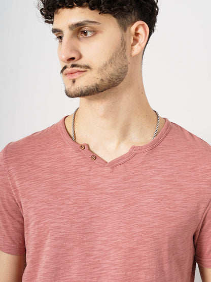 Celio* Solid Regular Fit Cotton Pink T-Shirt