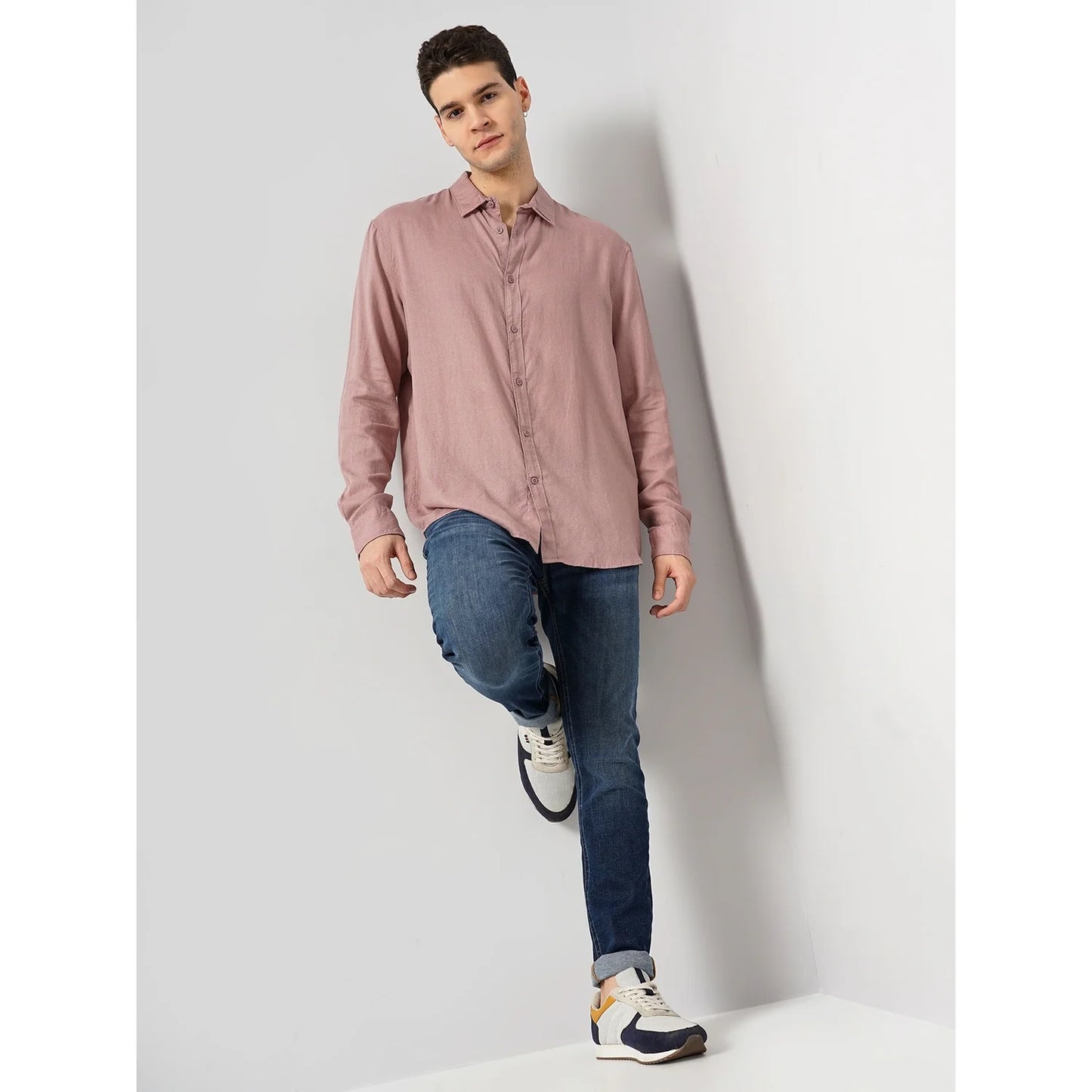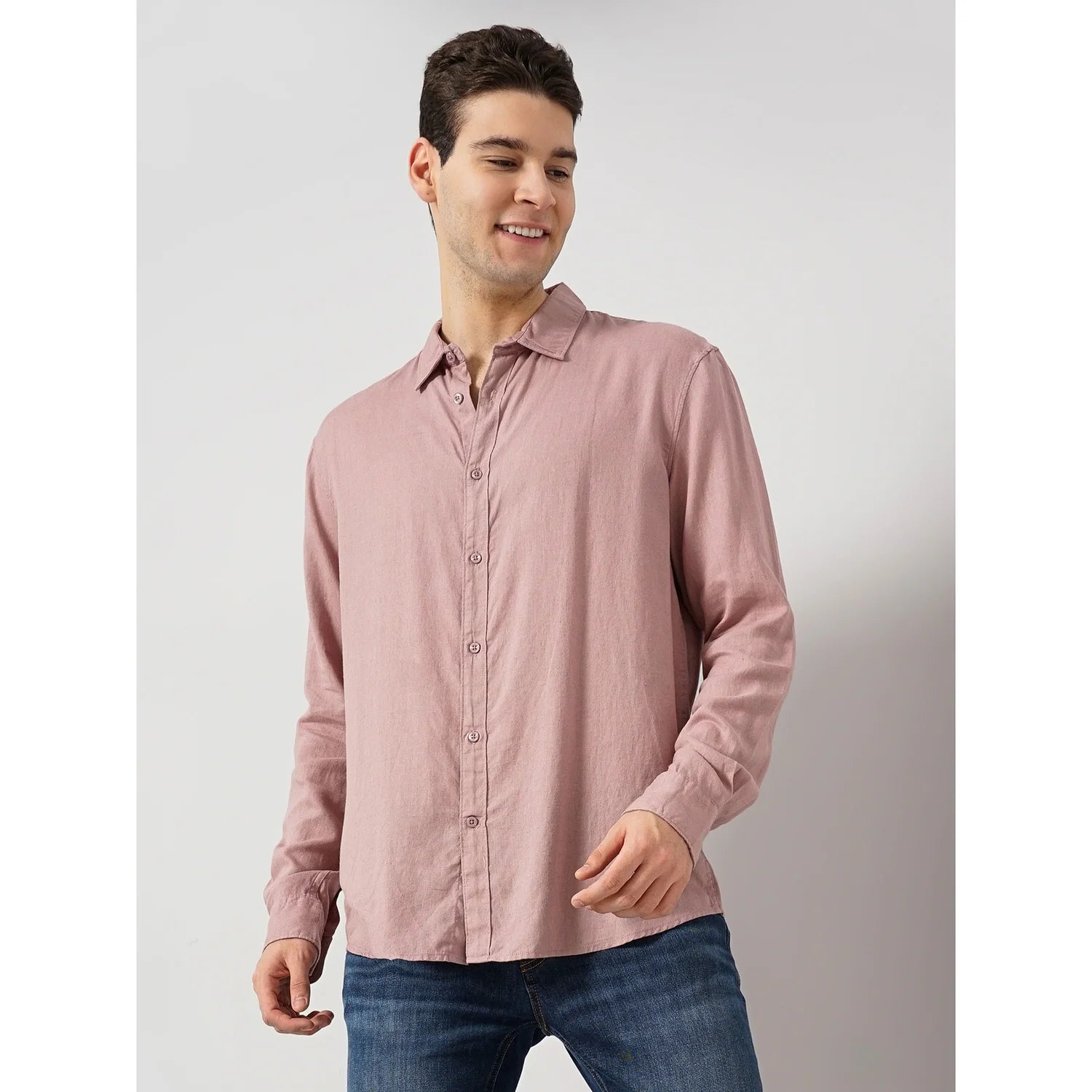 The Celio Mauve Linen Shirt is a stylish casual wear for men. Crafted from soft linen, it features long sleeves and a Pinky colour, perfect for relaxed outings. Disclaimer: All other items in the image are only for display purposes and will not be a part of the delivery content. Product colour may slightly vary due to photographic lighting sources. Country of Origin - India.