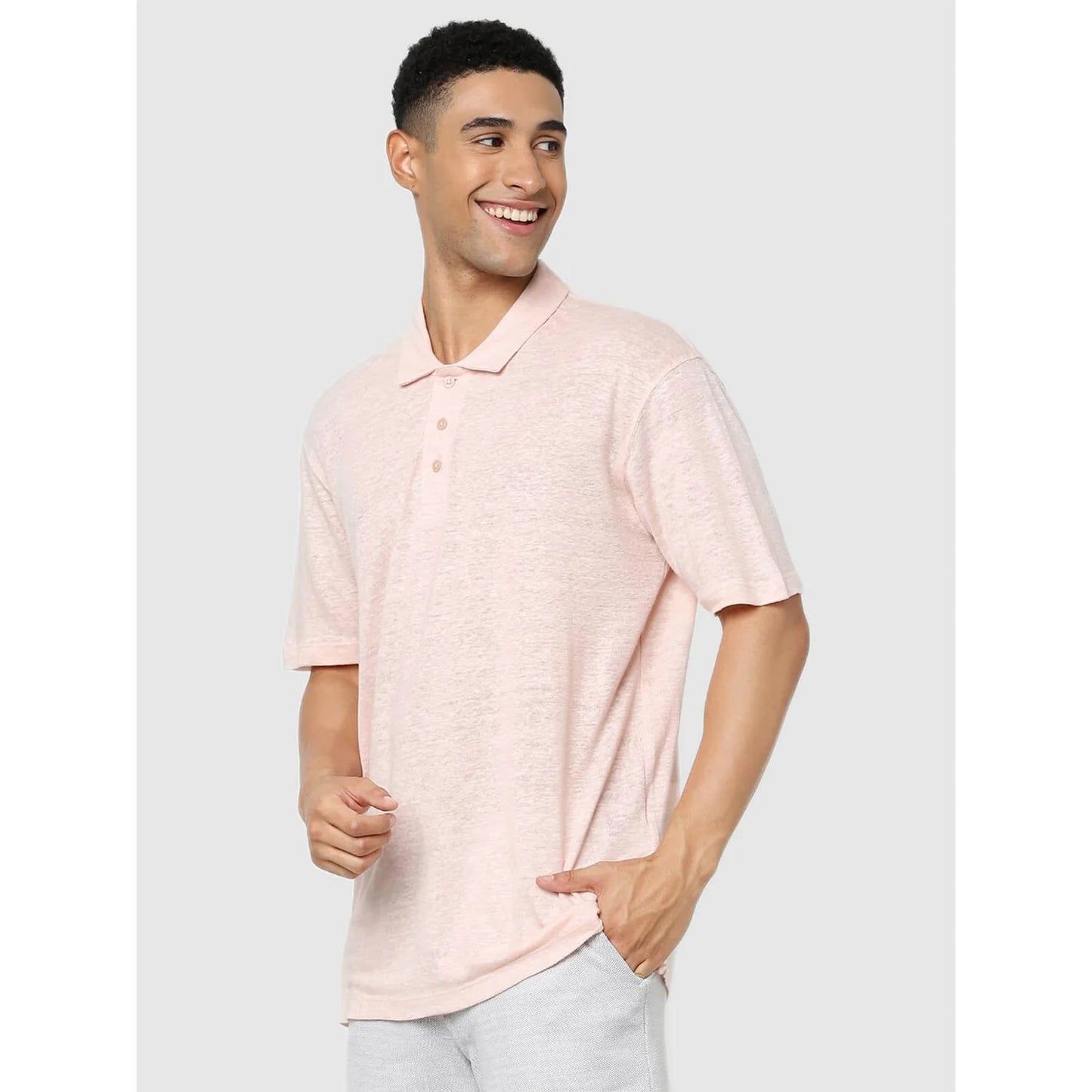 Celio* Solid Regular Fit Linen Pink T-Shirt