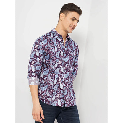 Celio* Paisley Regular Fit Cotton Purple Shirt