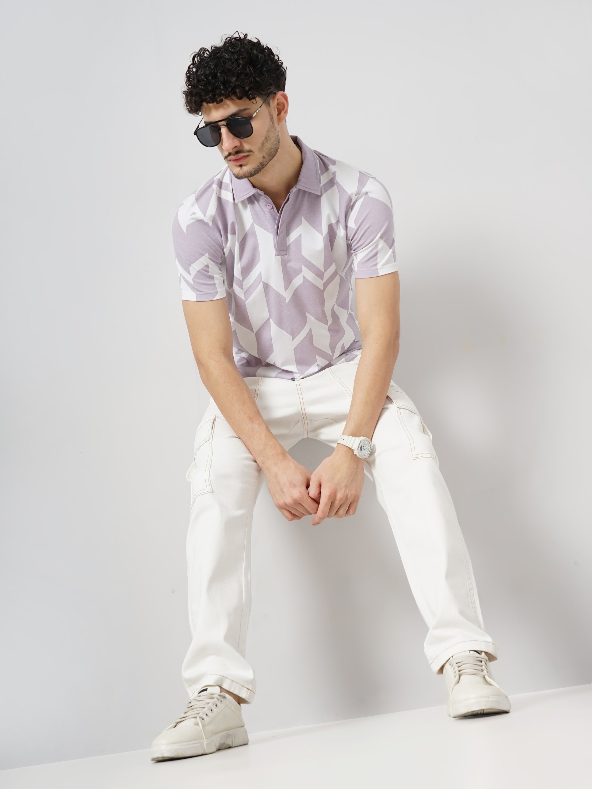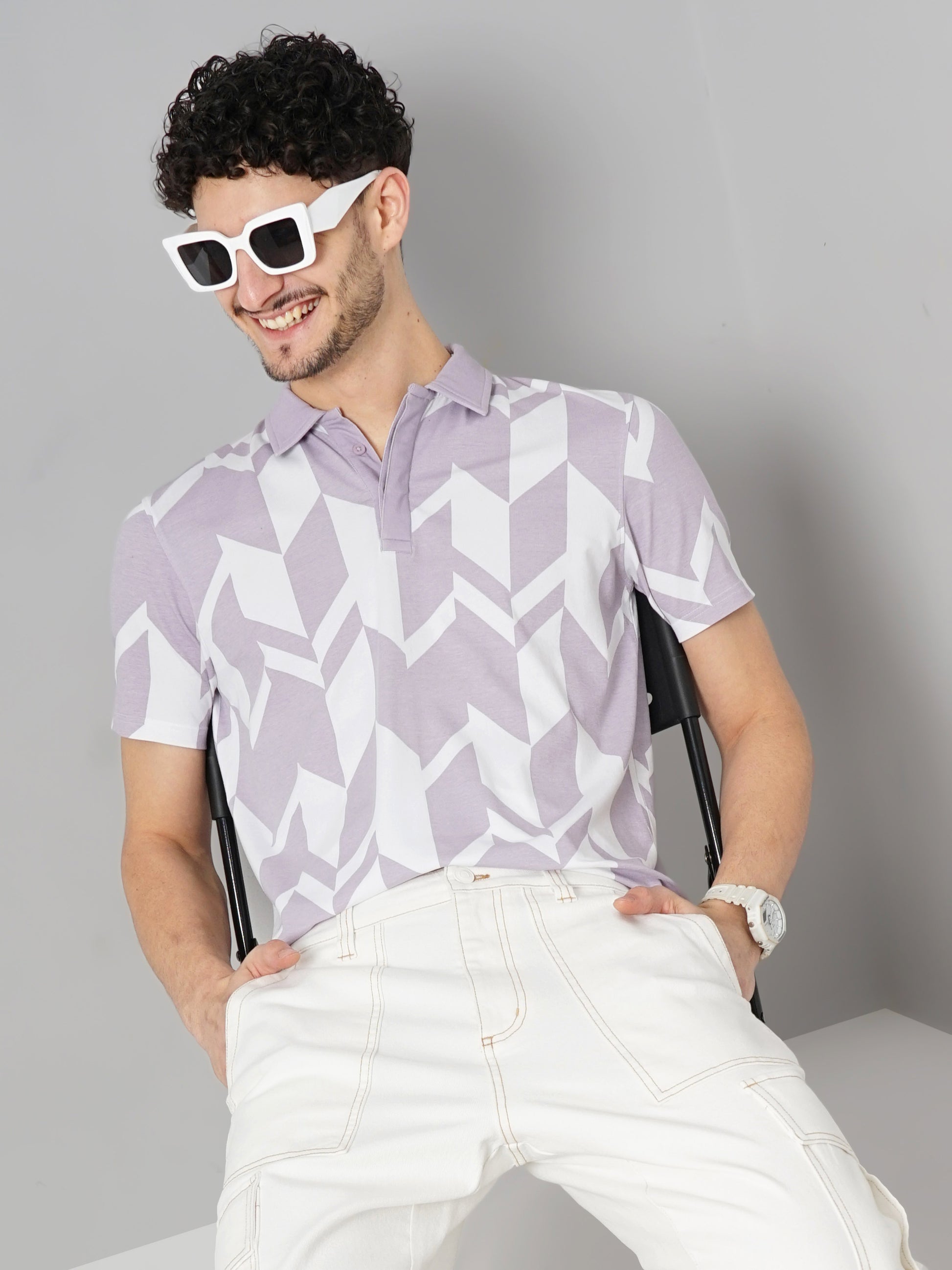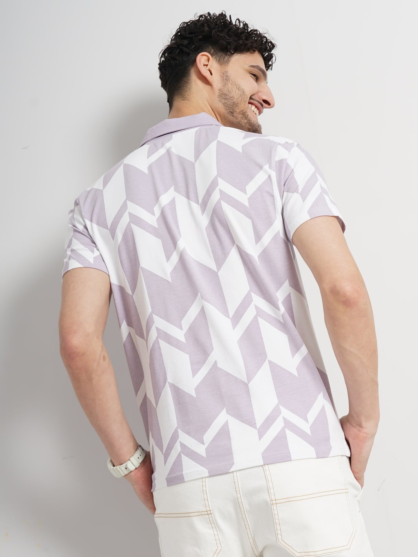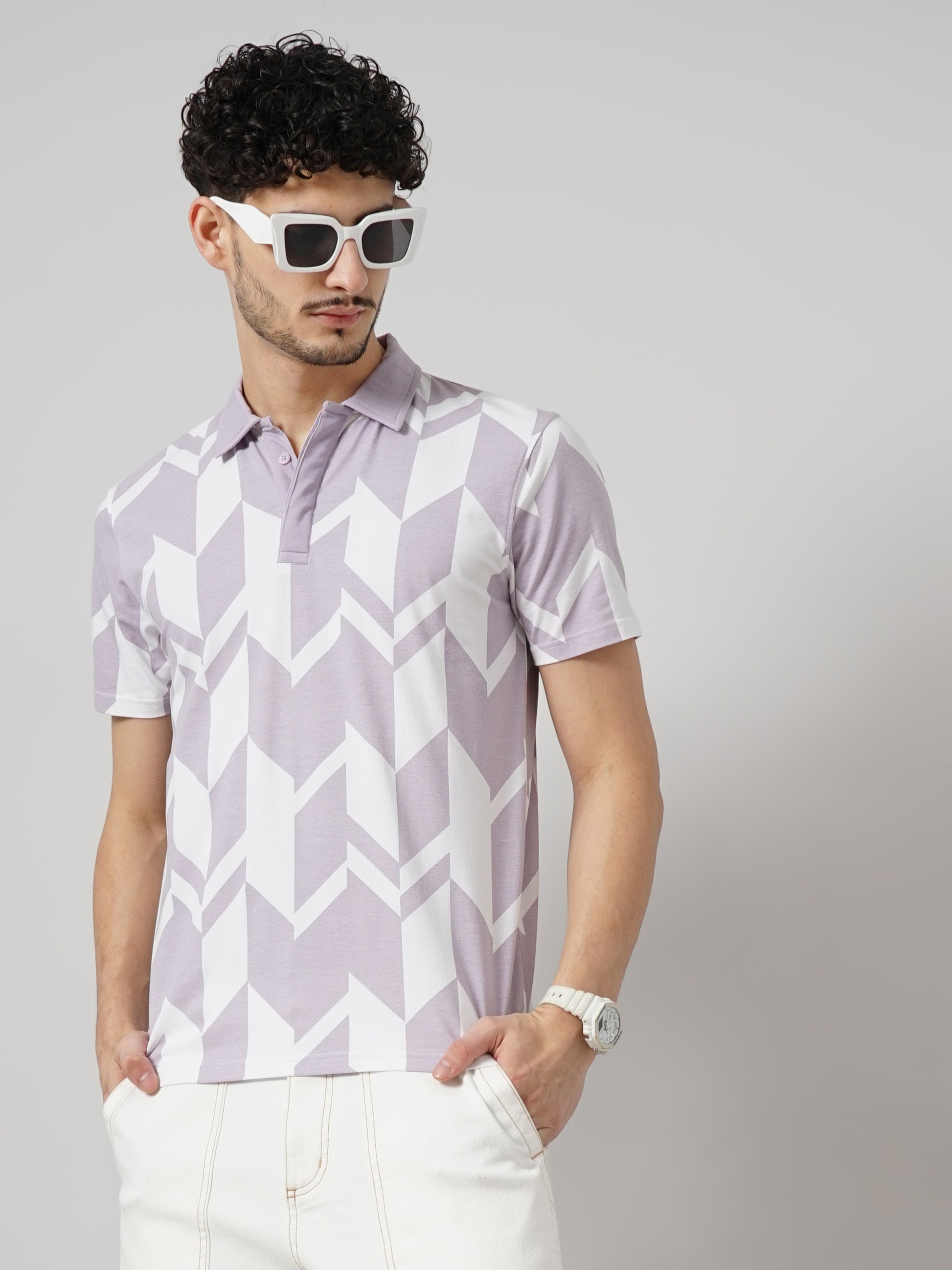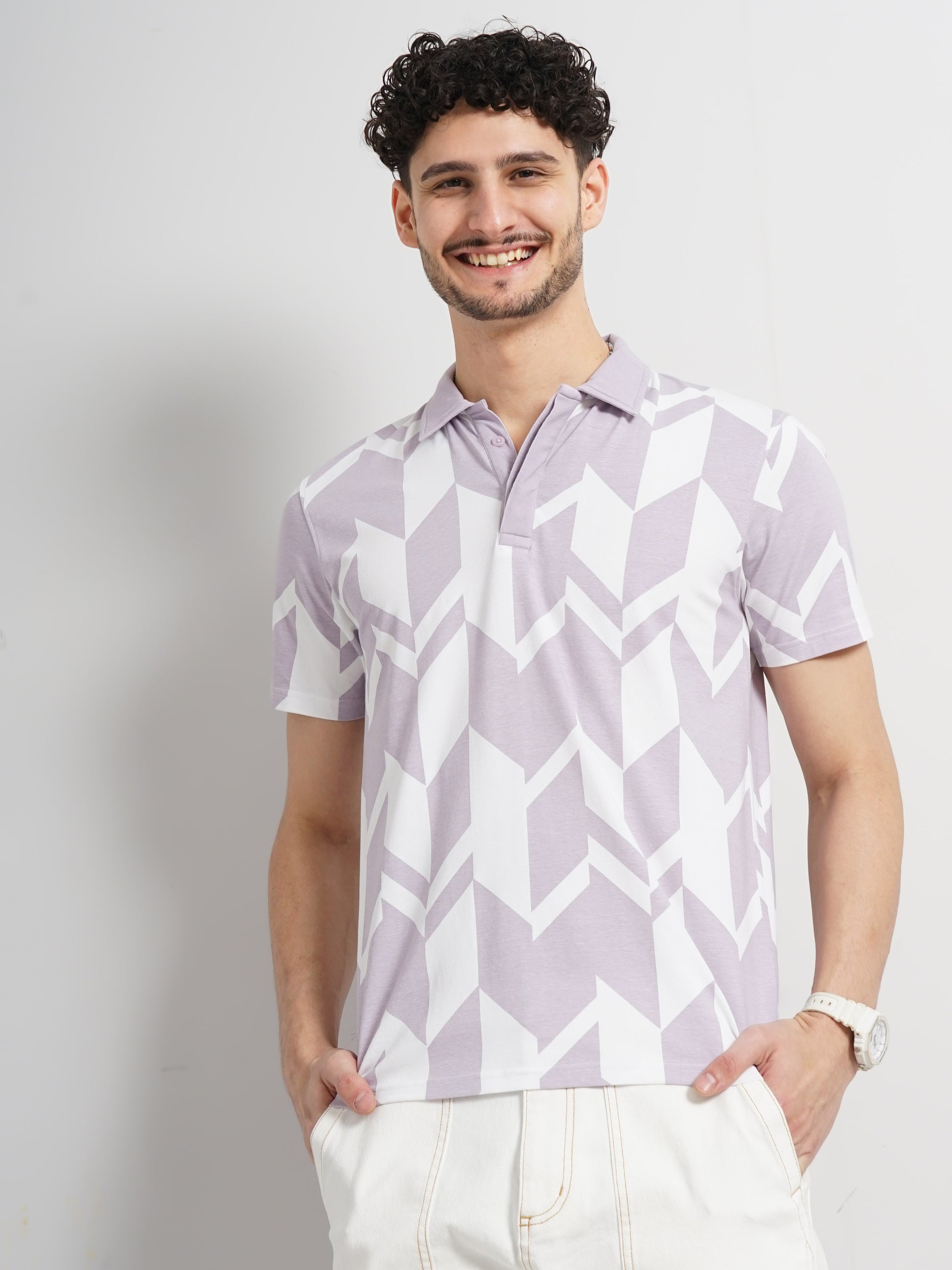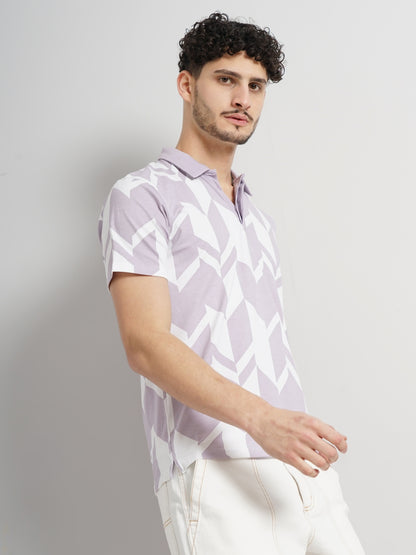 Shop the Celio men's purple cotton jersey t-shirt with an all-over print. Designed for casual occasions, it features short sleeves and a regular fit for comfort. Disclaimer: All other items in the image are only for display purposes and will not be a part of the delivery content. Product colour may slightly vary due to photographic lighting sources. Country of Origin - India.
