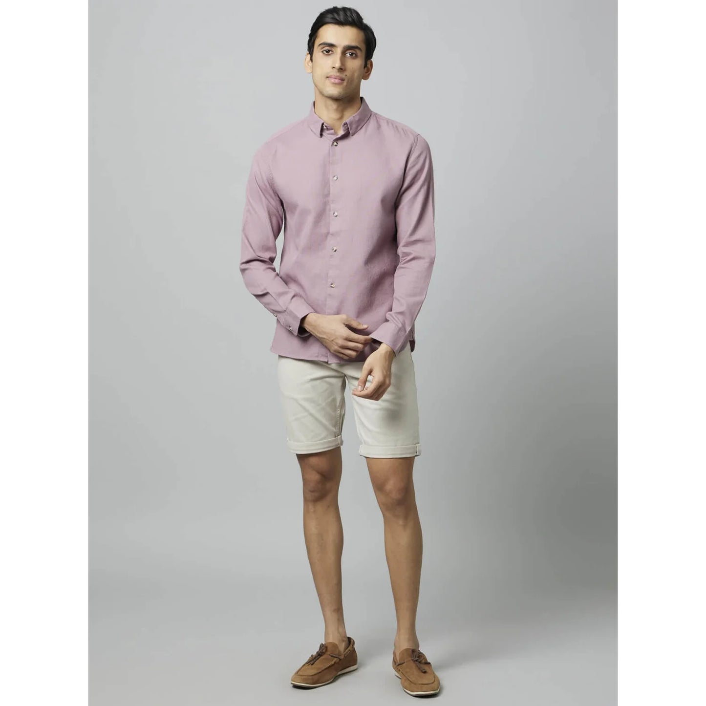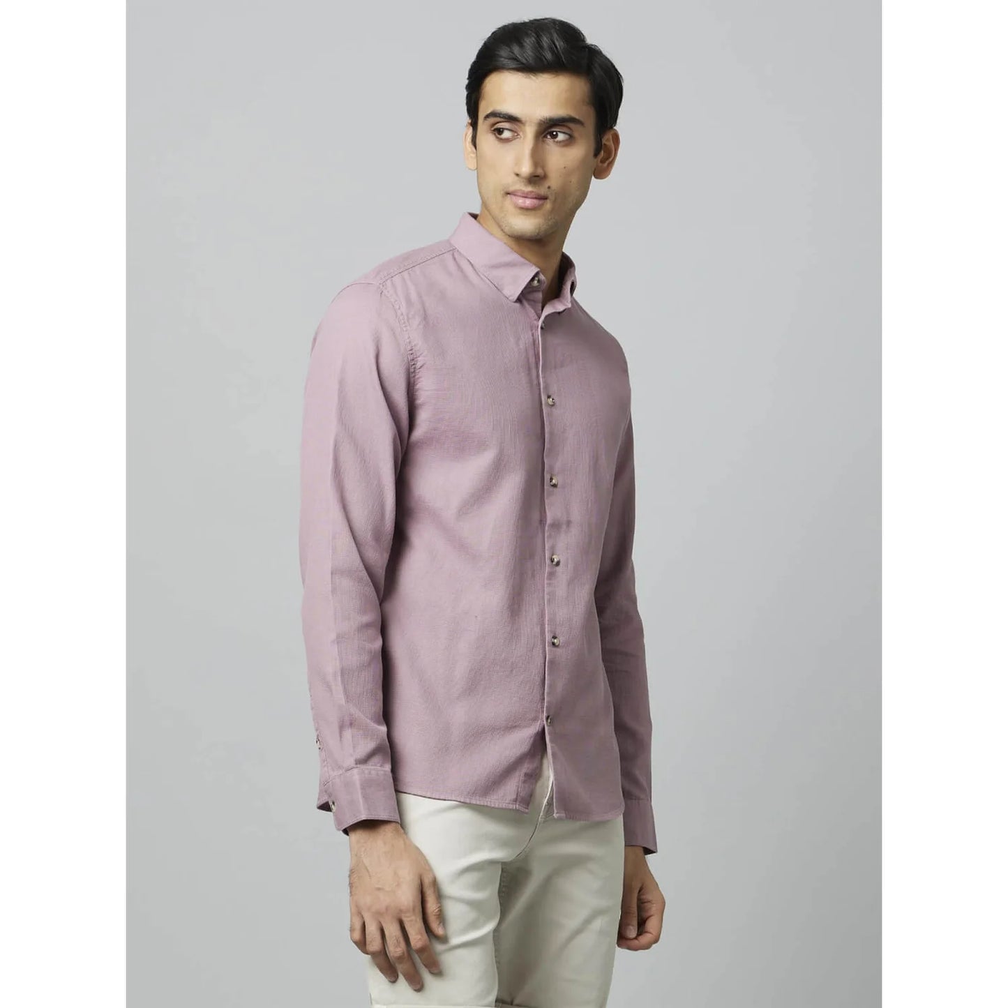 Elevate your casual wardrobe with the Celio Contemporary Solid Mauve Long Sleeves Shirt. Crafted in soft cotton, this stylish Purple shirt offers comfort and sophistication for men. Disclaimer: All other items in the image are only for display purposes and will not be a part of the delivery content. Product colour may slightly vary due to photographic lighting sources. Country of Origin - India.