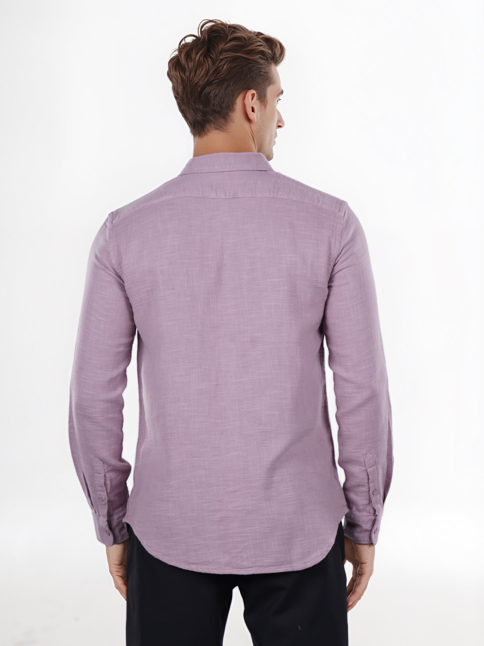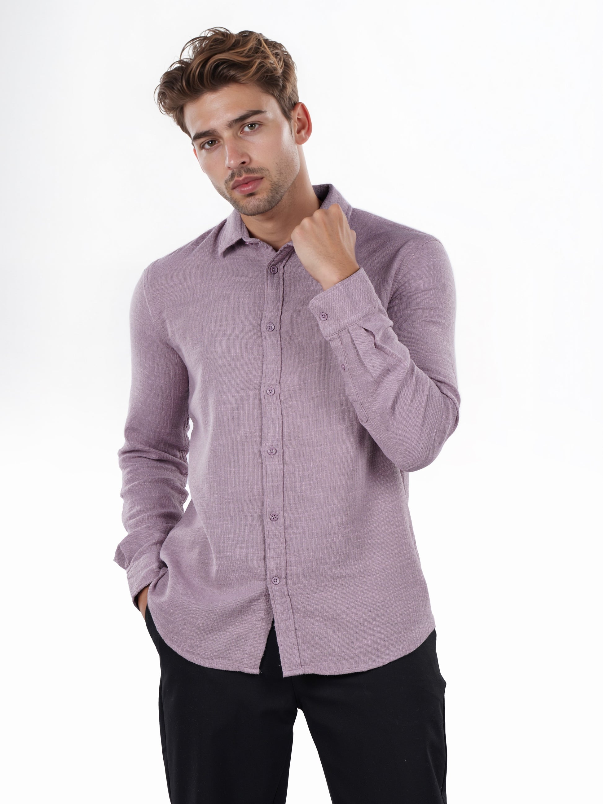 Discover the Celio Men Purple Solid Casual Shirt, crafted from soft cotton. This stylish long-sleeve shirt is perfect for casual occasions, offering a regular fit for comfort and ease. Disclaimer: All other items in the image are only for display purposes and will not be a part of the delivery content. Product colour may slightly vary due to photographic lighting sources. Country of Origin - India.