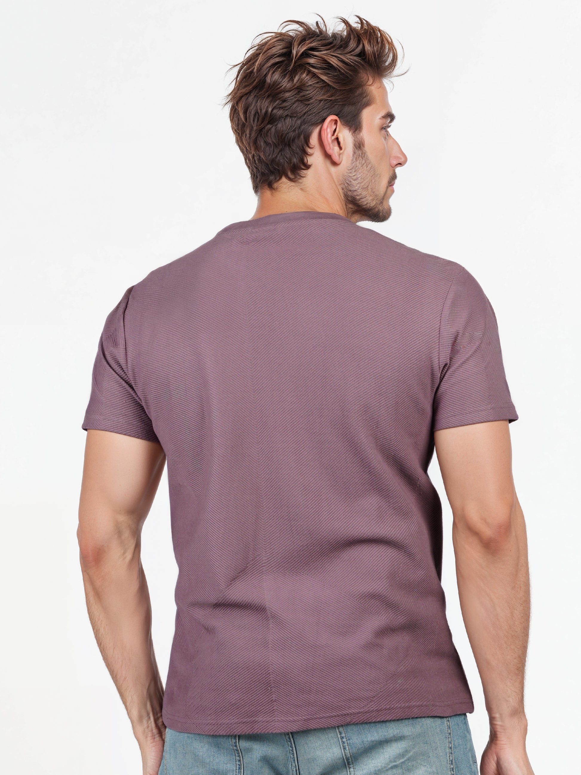 Elevate your casual wardrobe with the Celio Men Purple Solid T-shirt. Made from soft cotton, this regular fit tee features short sleeves and a stylish purple hue for a trendy look. Disclaimer: All other items in the image are only for display purposes and will not be a part of the delivery content. Product colour may slightly vary due to photographic lighting sources. Country of Origin - India.
