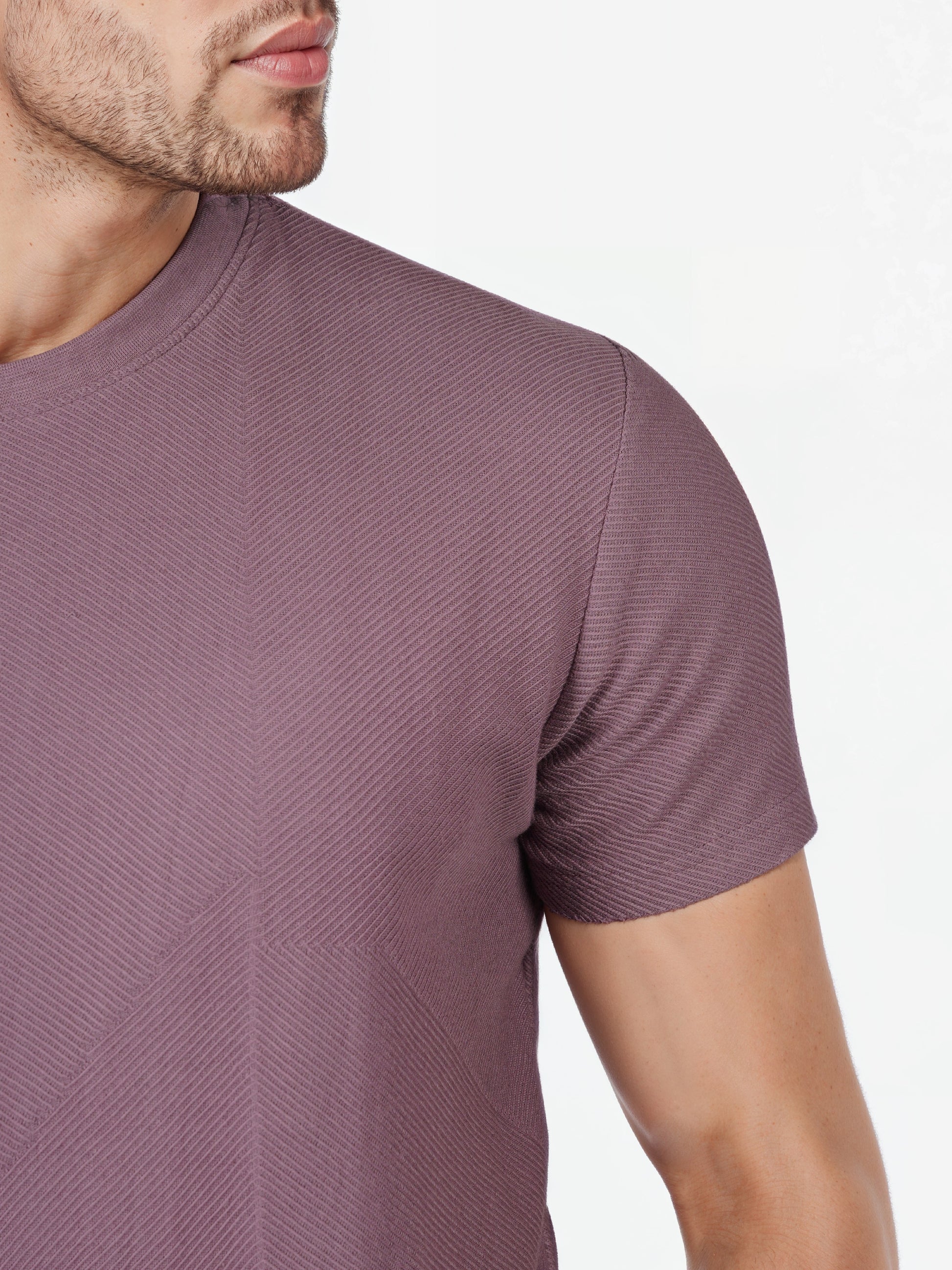 Celio* Solid Regular Fit Cotton Purple T-Shirts