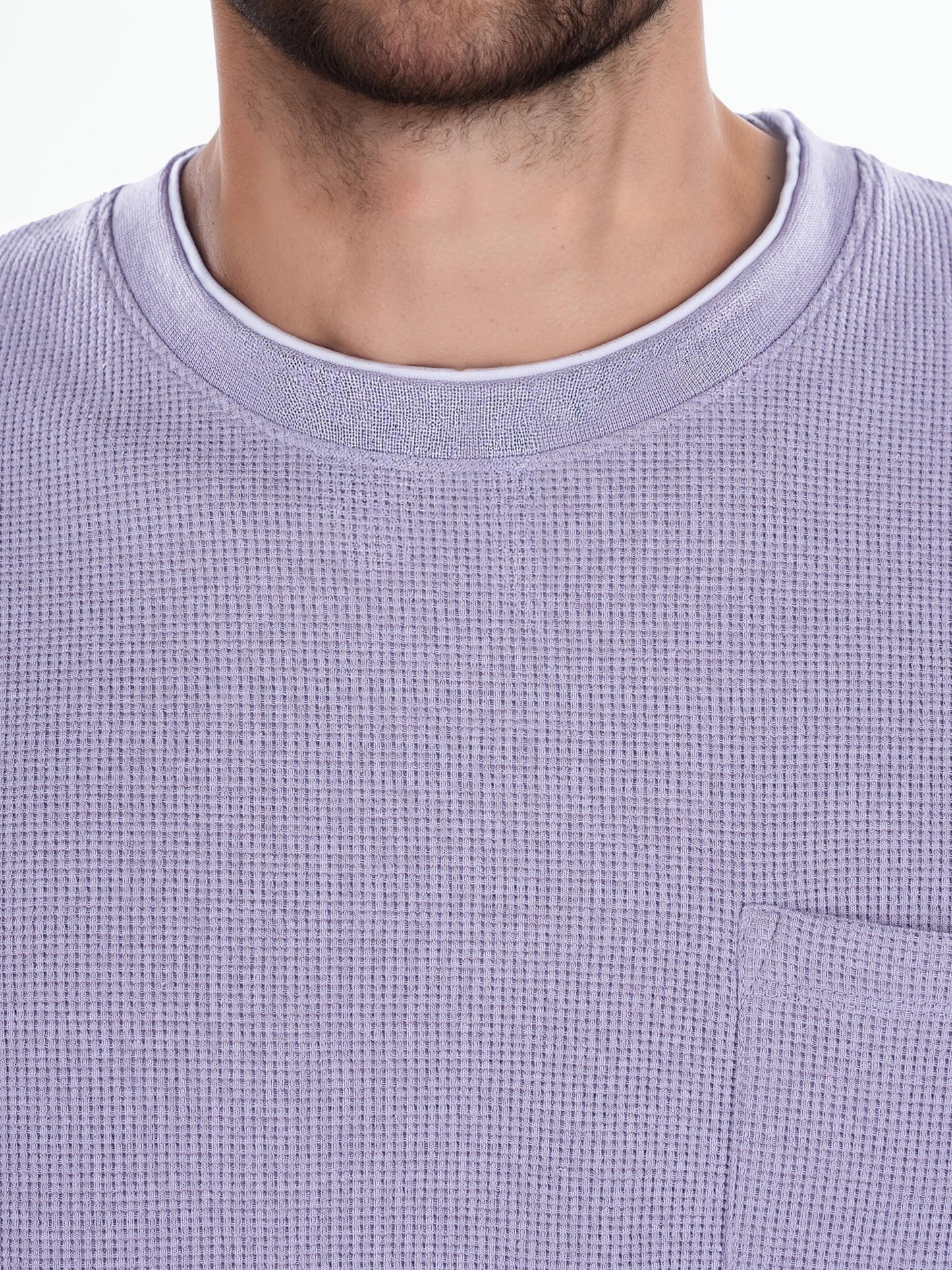 Celio* Solid Straight Fit Cotton Purple T-Shirt