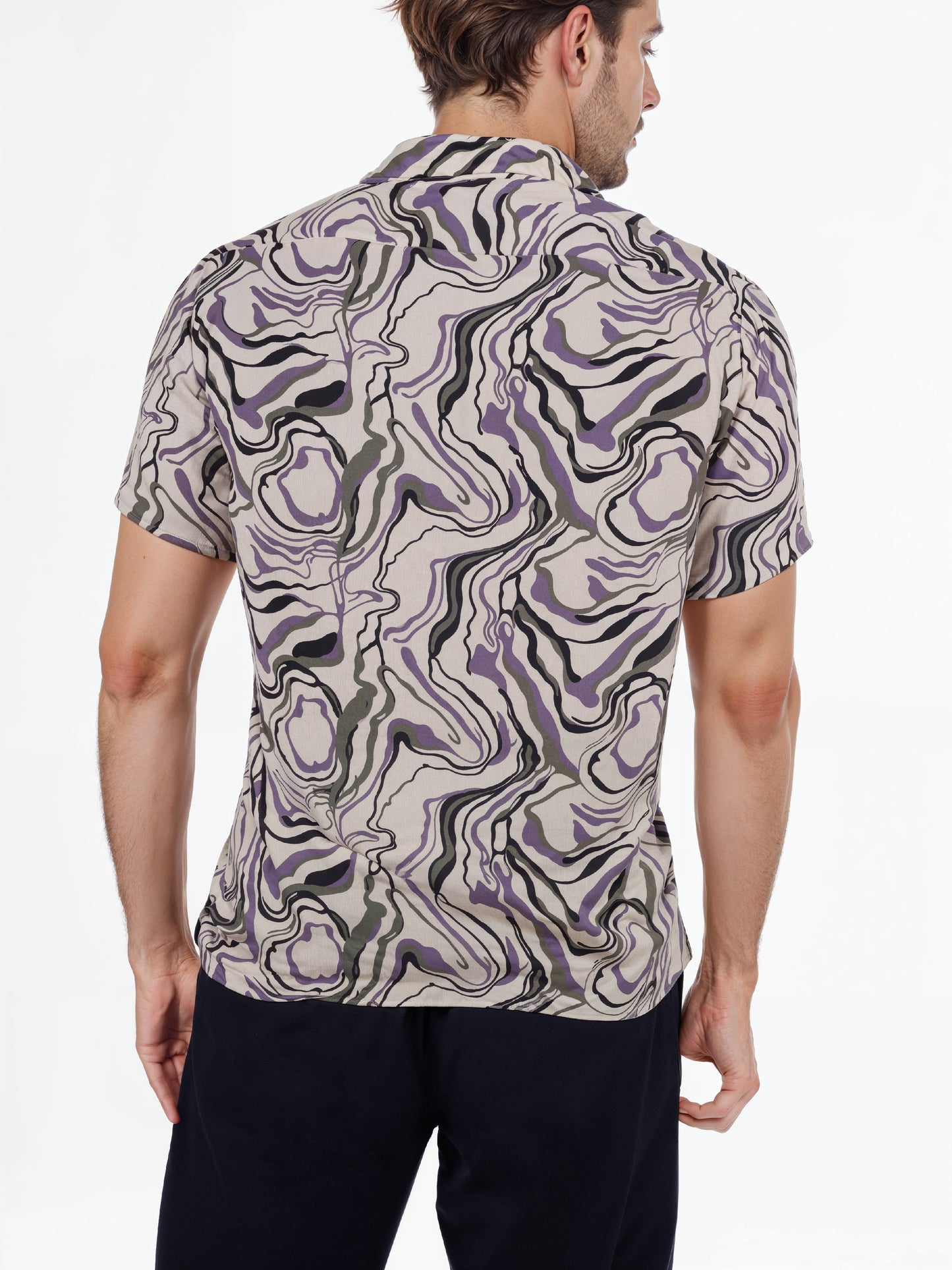 Elevate your casual wardrobe with the Celio Men Purple Printed Regular Fit Shirt. Crafted from soft viscose, it features short sleeves and a stylish print, perfect for any laid-back occasion. Disclaimer: All other items in the image are only for display purposes and will not be a part of the delivery content. Product colour may slightly vary due to photographic lighting sources. Country of Origin - India.