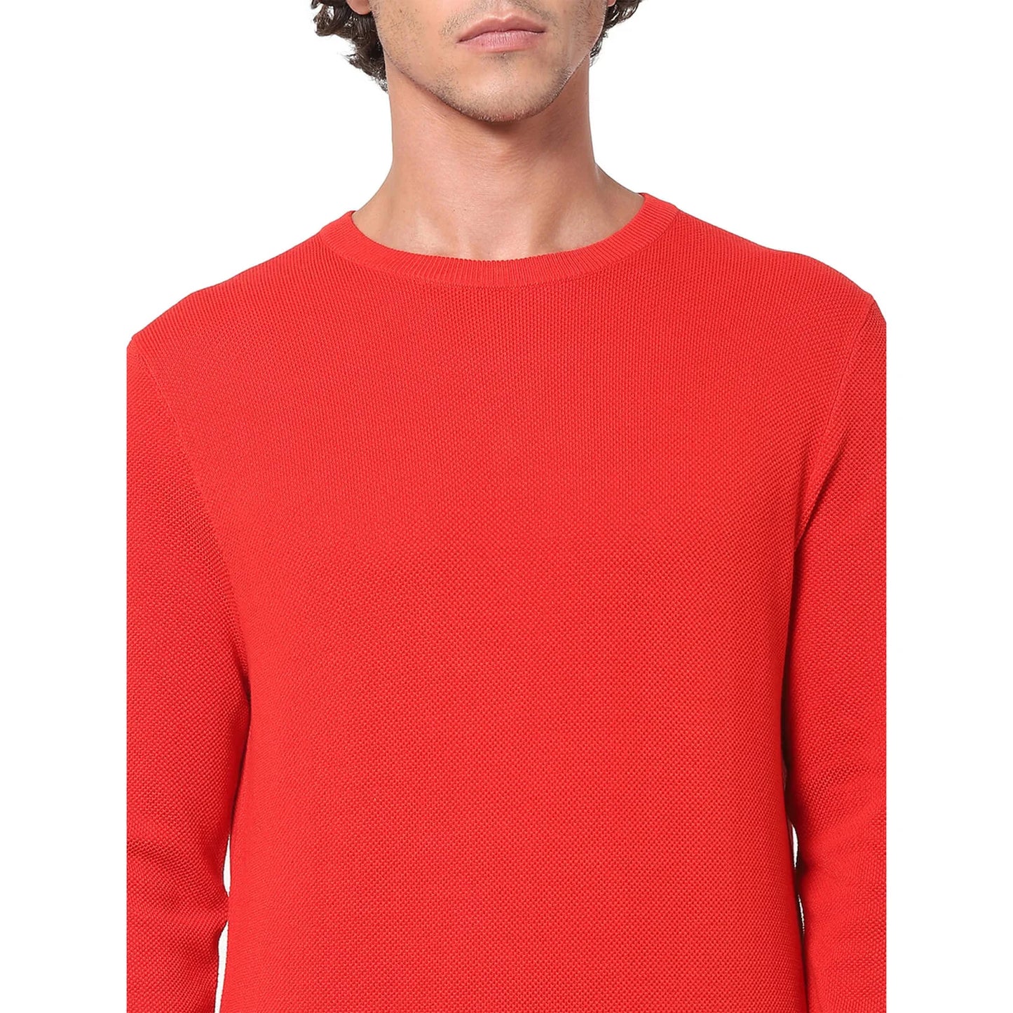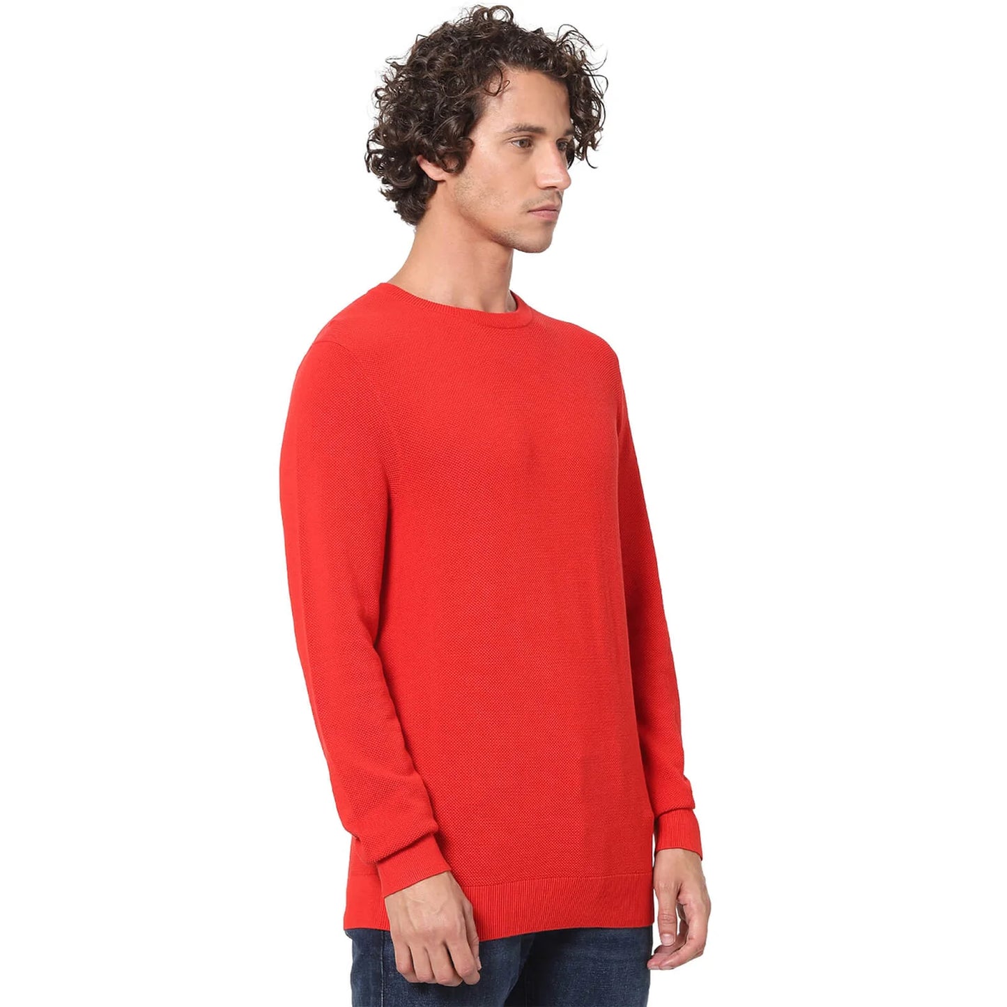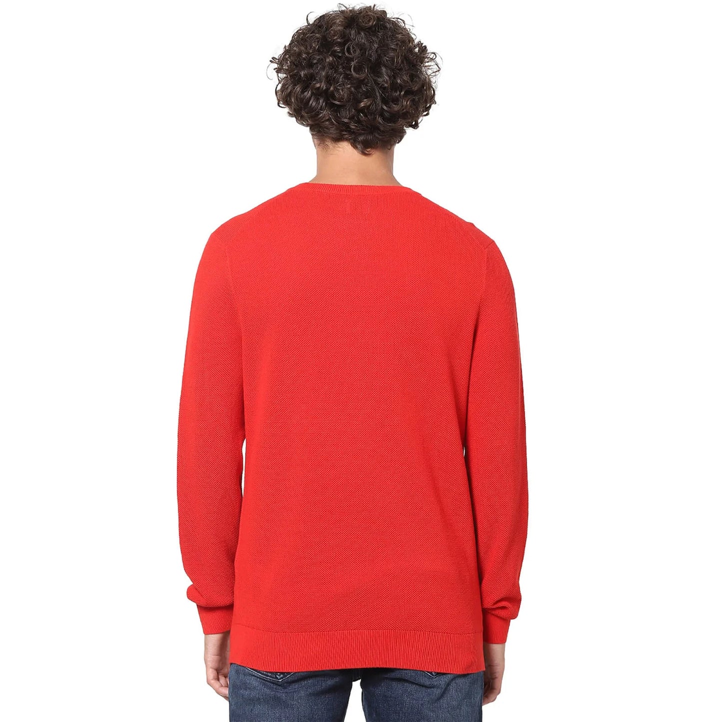 This Celio Men's Red Sweater is a stylish addition to your casual wardrobe. Made from comfortable cotton, it features long sleeves and is perfect for everyday wear. Disclaimer: All other items in the image are only for display purposes and will not be a part of the delivery content. Product colour may slightly vary due to photographic lighting sources. Country of Origin - India.