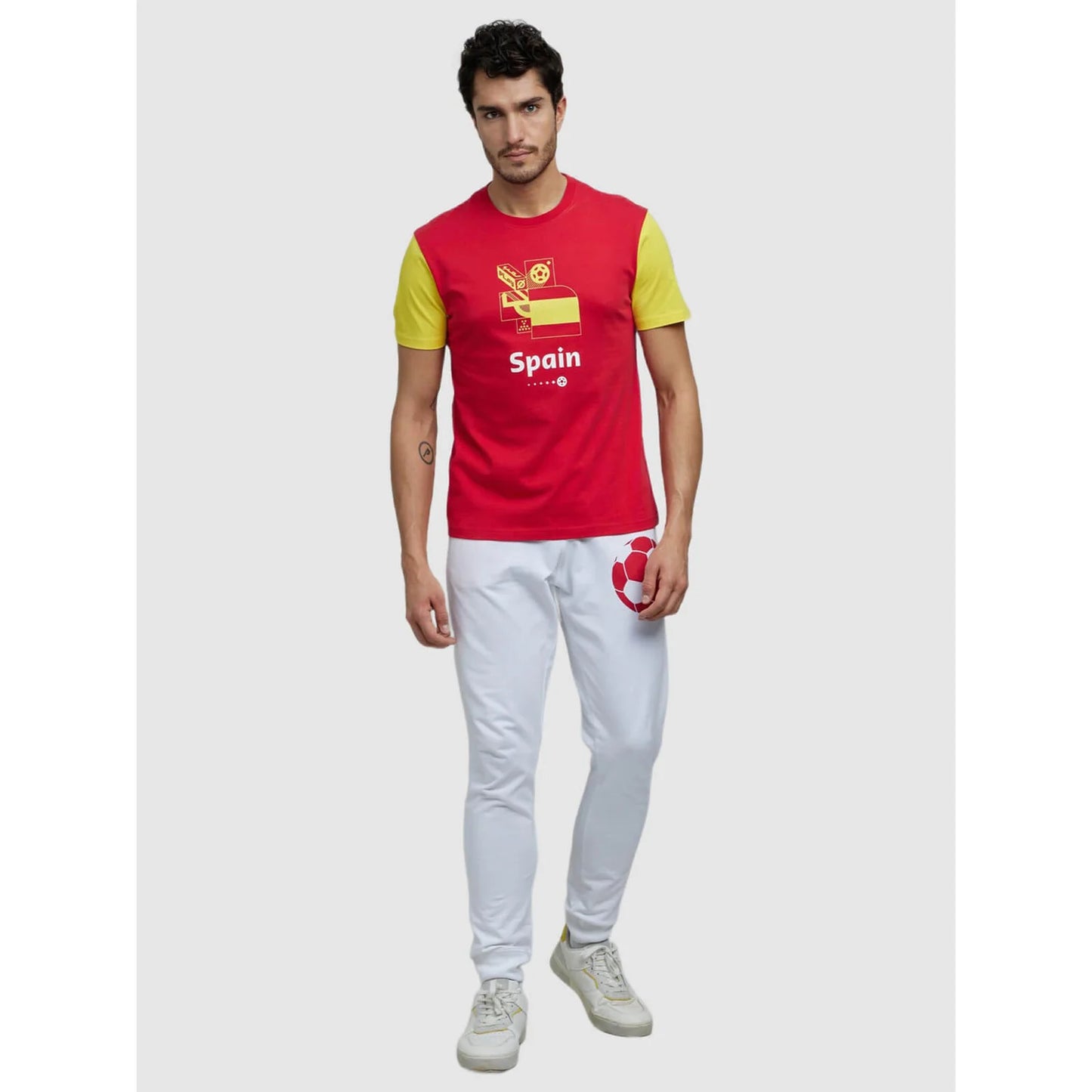Feel the excitement of the game with the FIFA Red Printed Cotton T-shirt, a bold pick for football enthusiasts. Crafted from soft, breathable cotton, the tee shirt offers the perfect balance of comfort and style, making it ideal for any casual outing. The vibrant red color stands out, capturing the energy and passion of the sport, while the striking graphic print showcases your love for the game. Designed with a classic round neck and short sleeves, this T-shirt is a versatile staple for any fan’s wardrobe. Wear it with jeans for a relaxed look, or pair it with joggers for a sporty edge. Whether you’re out cheering on your team or just hanging with friends, this T-shirt keeps the spirit of football alive wherever you go. Made from 100% cotton, this tee is all about effortless style and comfort. You can wear it all day in the sun and stay totally cool. Disclaimer: All other items in the image are only for display purposes and will not be a part of the delivery content. Product colour may slightly vary due to photographic lighting sources. Country of Origin - India.