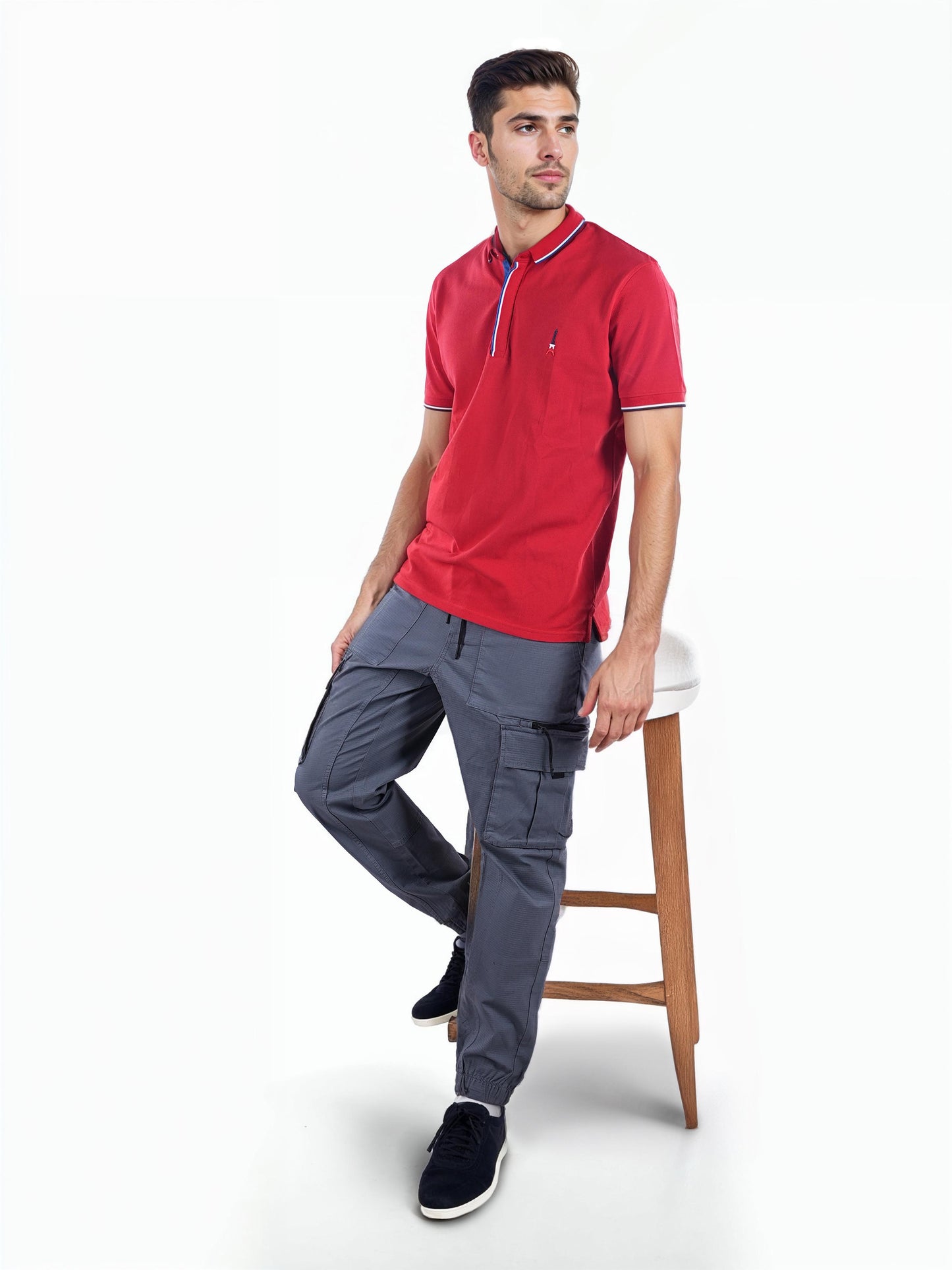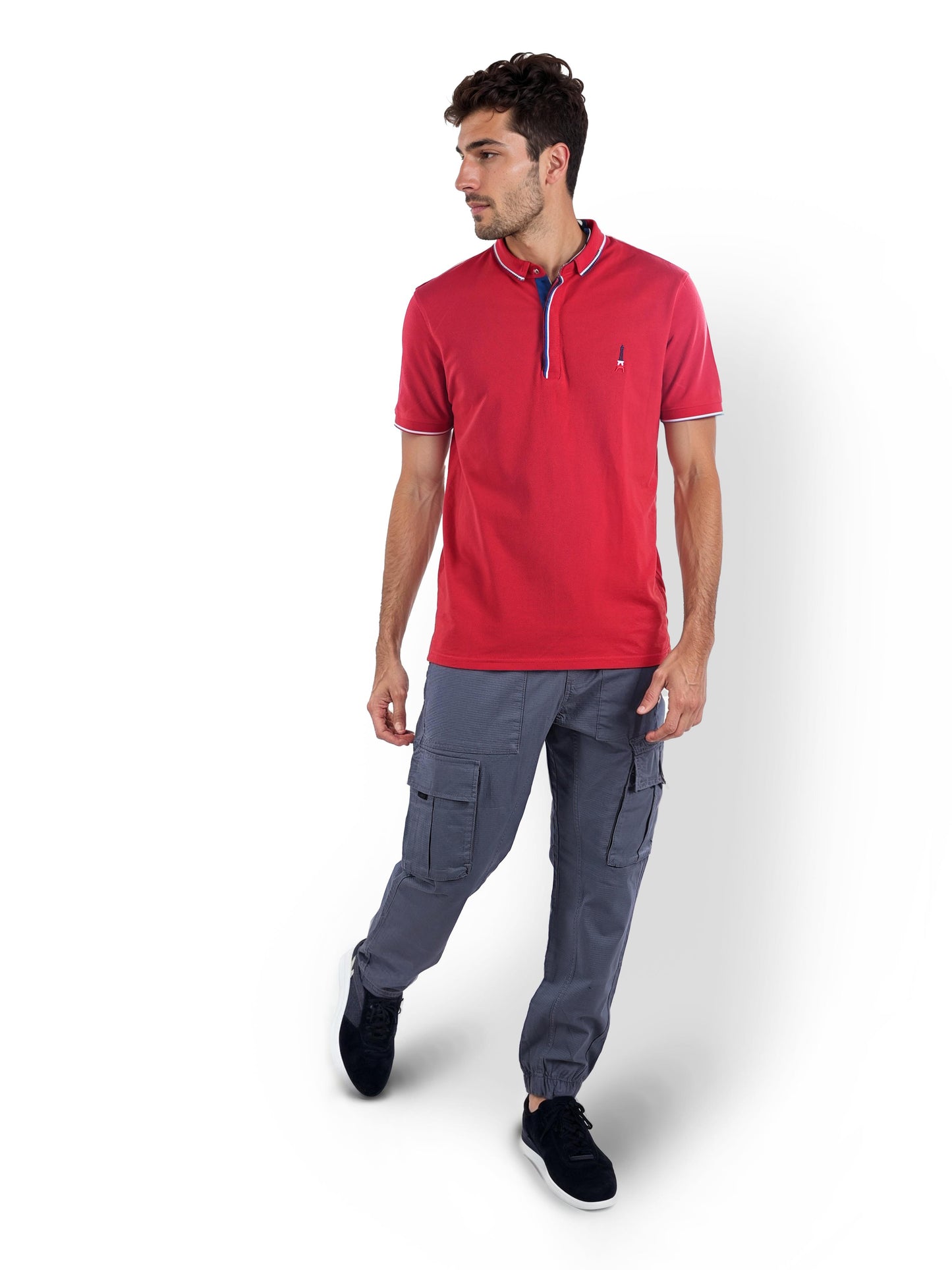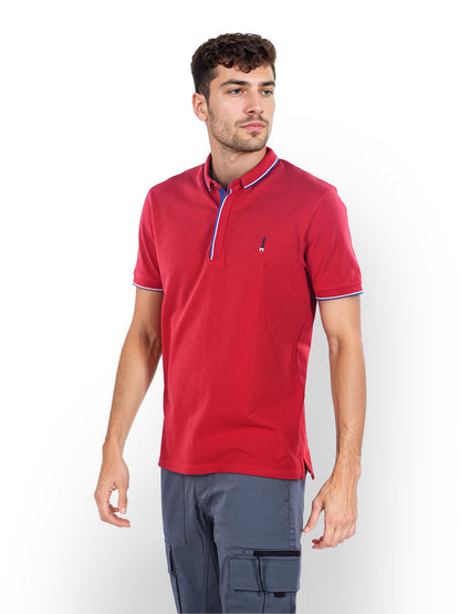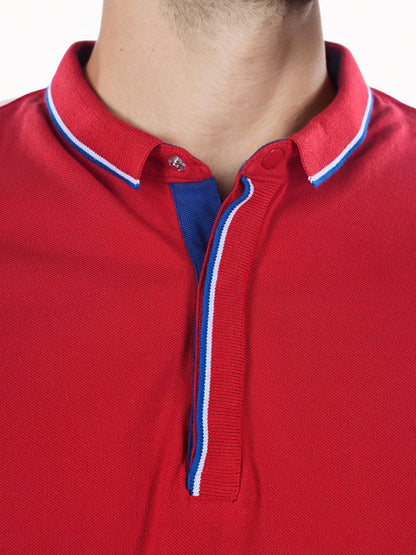 Men's regular fit red polo t-shirt by Celio, crafted from soft cotton. Ideal for casual outings, featuring short sleeves for comfort and style. Disclaimer: All other items in the image are only for display purposes and will not be a part of the delivery content. Product colour may slightly vary due to photographic lighting sources. Country of Origin - India.