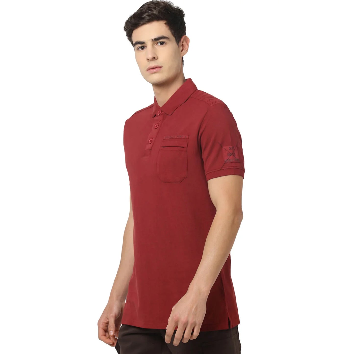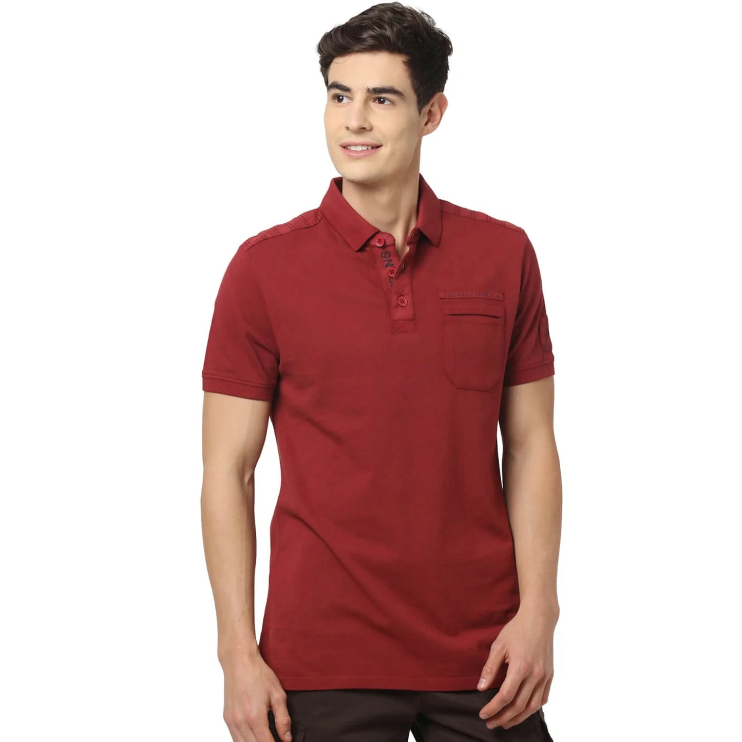 Elevate your casual wardrobe with the Celio Men's Red Cotton Polo. Featuring short sleeves, this solid red brick polo ensures style and comfort for any occasion. Disclaimer: All other items in the image are only for display purposes and will not be a part of the delivery content. Product colour may slightly vary due to photographic lighting sources. Country of Origin - India.