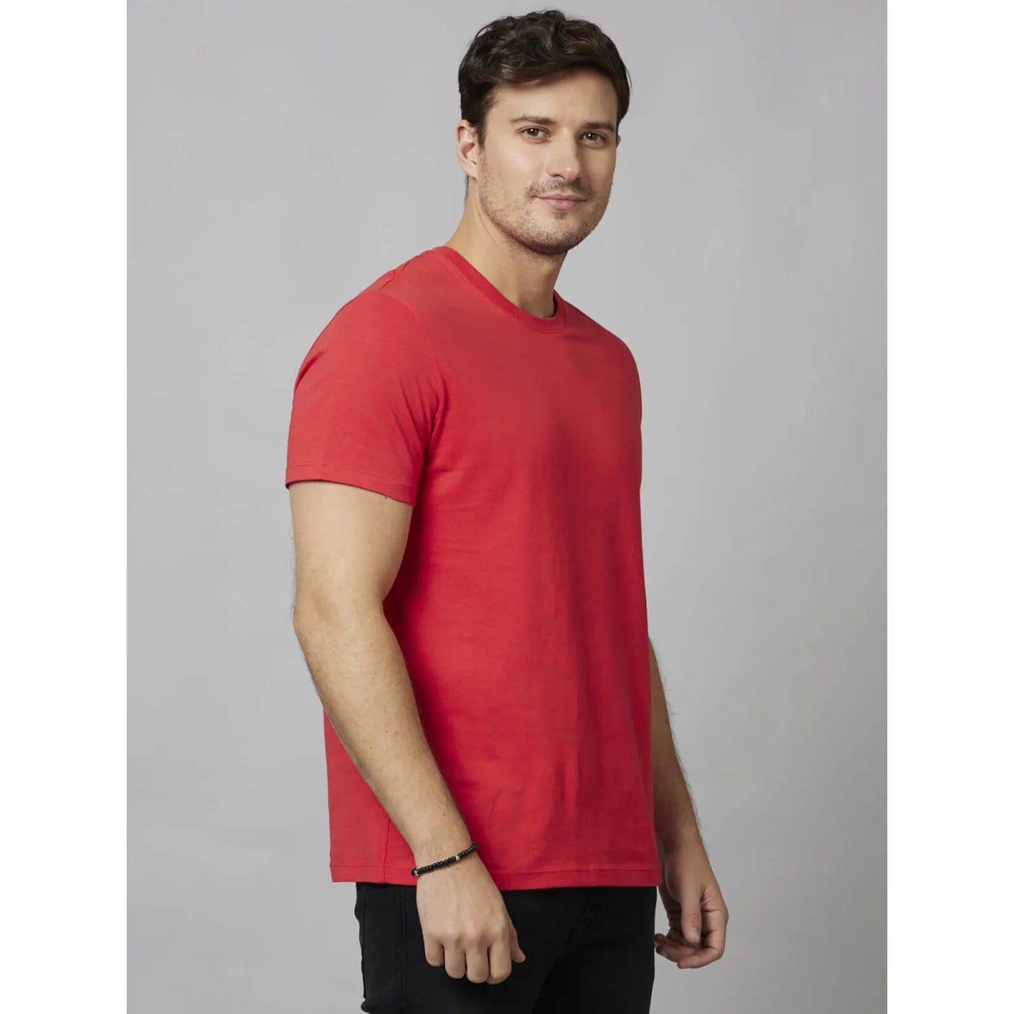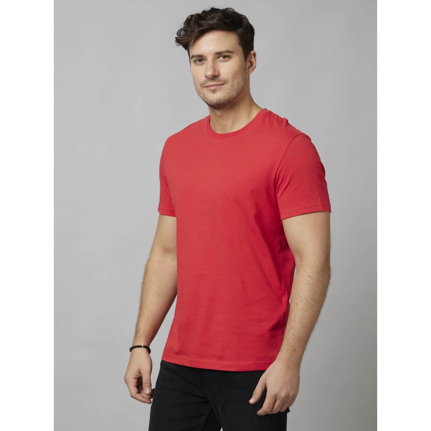 Celio* Solid Regular Fit Cotton Red T-Shirt