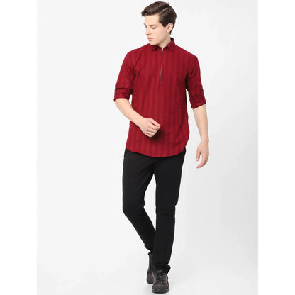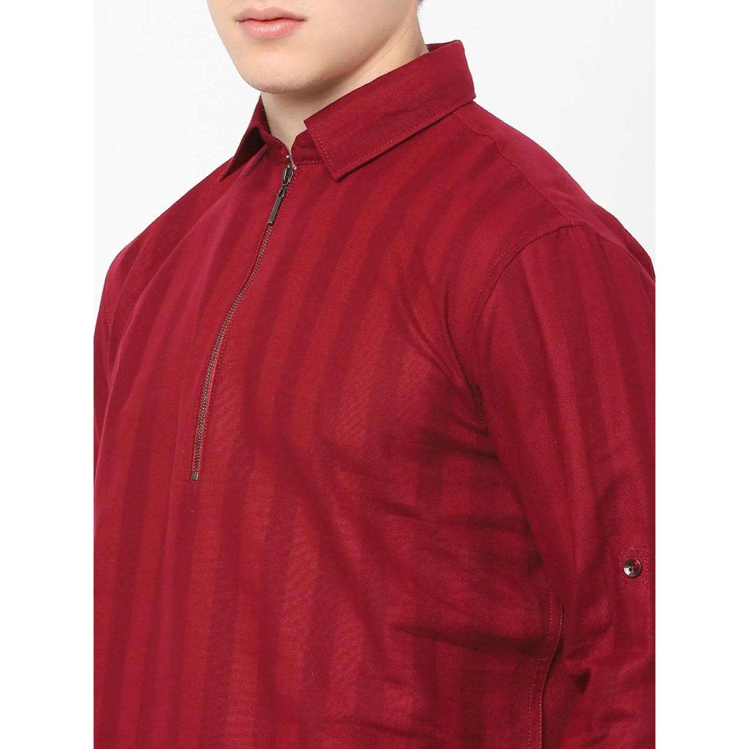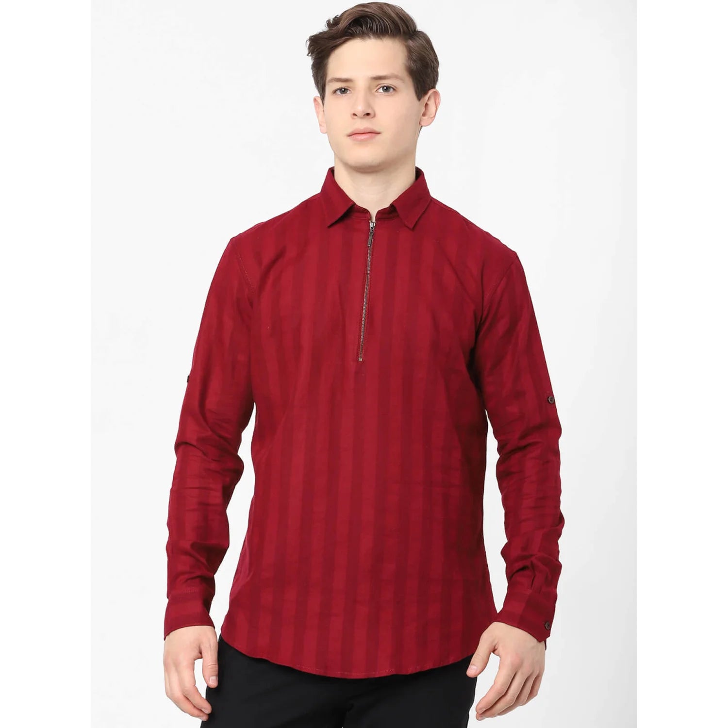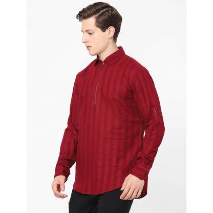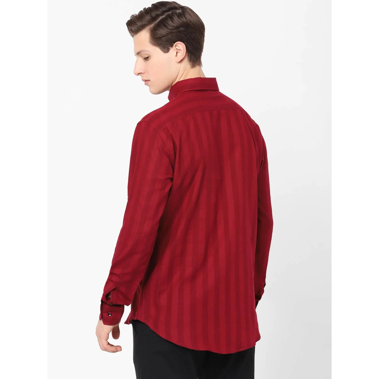 Upgrade your casual wardrobe with the Celio Men's Red Striped Full Sleeves Shirt in Bazip Burgundy. Made from soft cotton, this Red shirt features long sleeves for comfort. Disclaimer: All other items in the image are only for display purposes and will not be a part of the delivery content. Product colour may slightly vary due to photographic lighting sources. Country of Origin - India.