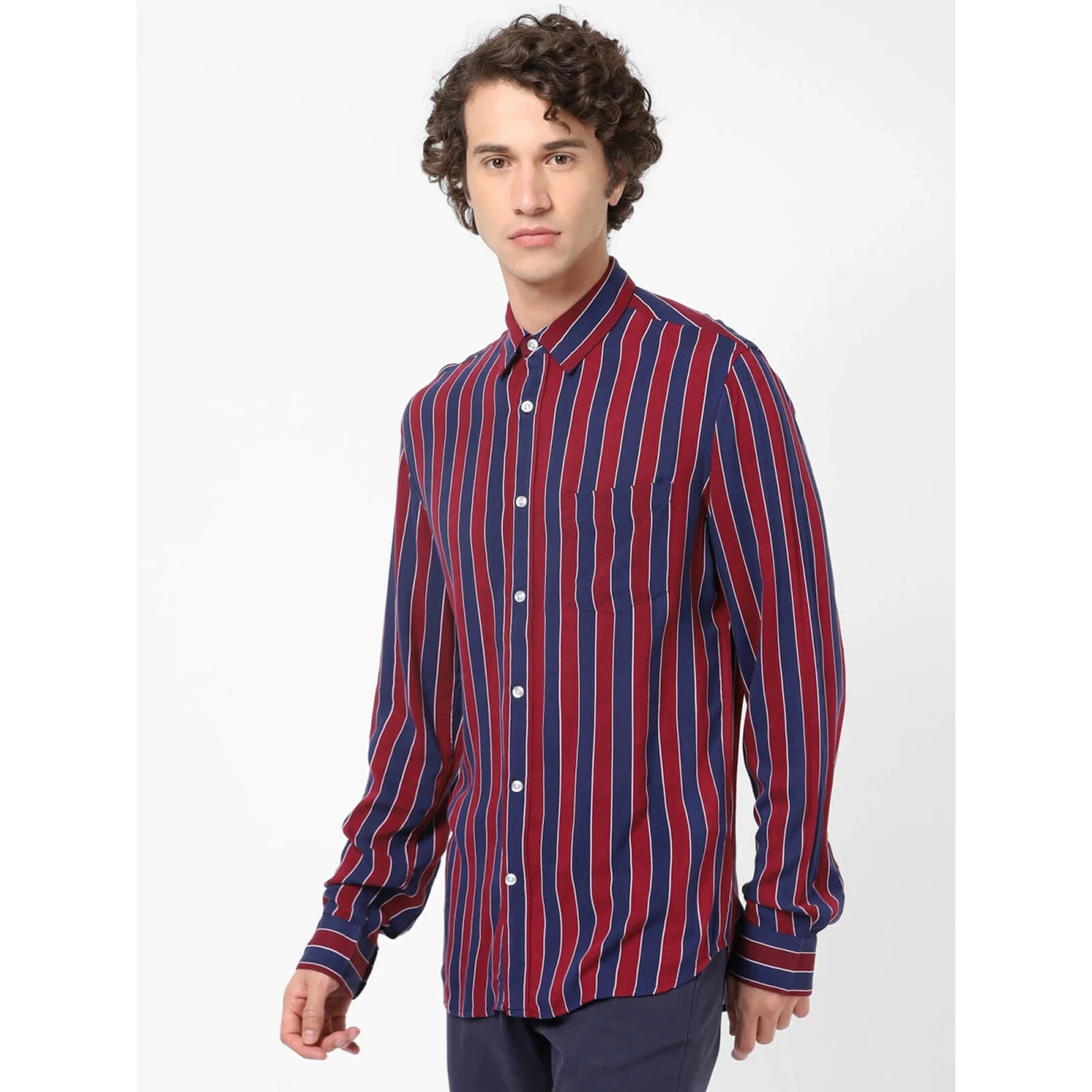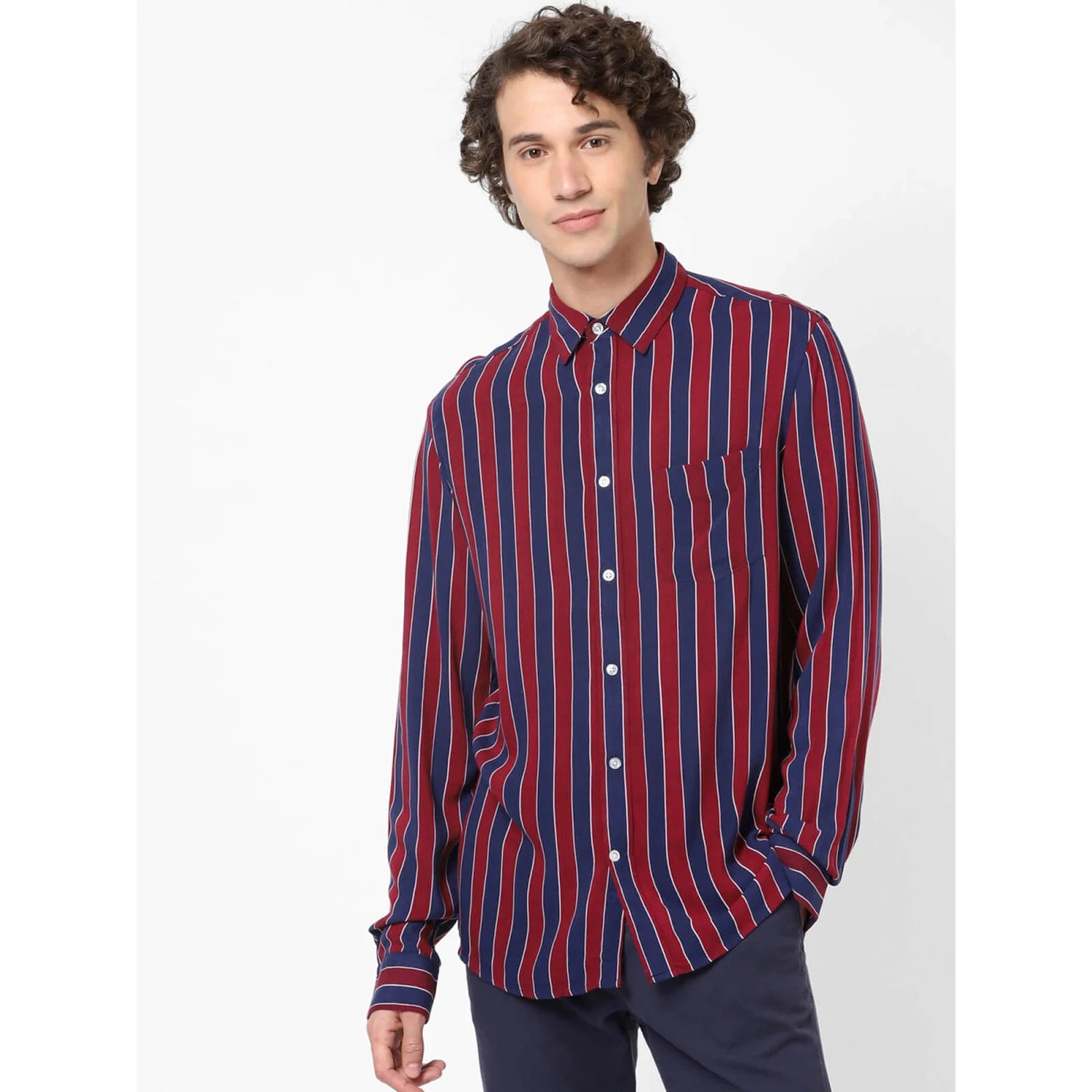 Elevate your casual wardrobe with the Celio Men's Red and Blue Striped Shirt. Made from comfortable cotton, this Red-colored shirt features long sleeves, perfect for any casual occasion. Disclaimer: All other items in the image are only for display purposes and will not be a part of the delivery content. Product colour may slightly vary due to photographic lighting sources. Country of Origin - India.