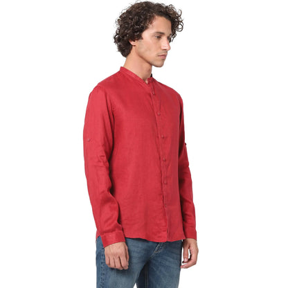 Elevate your casual wardrobe with the Celio Men's Red Linen Solid Casual Shirt in Vatamao Red. Designed for men, this long sleeve shirt offers comfort and style in a vibrant hue. Disclaimer: All other items in the image are only for display purposes and will not be a part of the delivery content. Product colour may slightly vary due to photographic lighting sources. Country of Origin - India.