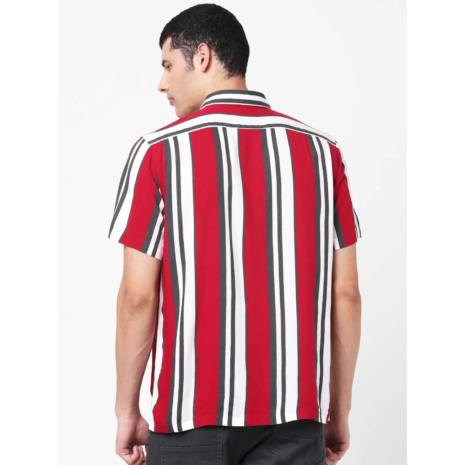 Stay stylish with the Celio Men's Multicolour Striped Casual Shirt in Bavisline Red. Made from soft viscose, it features long sleeves and is perfect for casual occasions. Disclaimer: All other items in the image are only for display purposes and will not be a part of the delivery content. Product colour may slightly vary due to photographic lighting sources. Country of Origin - India.