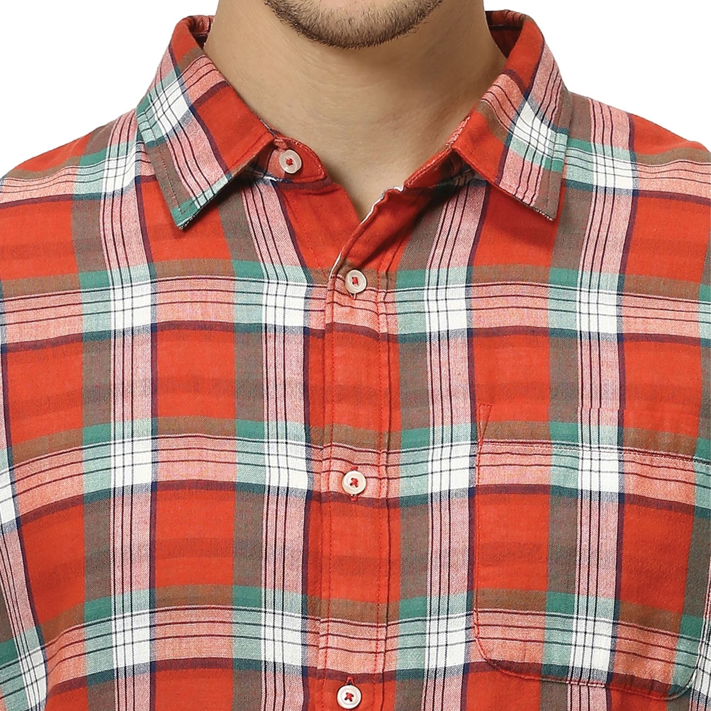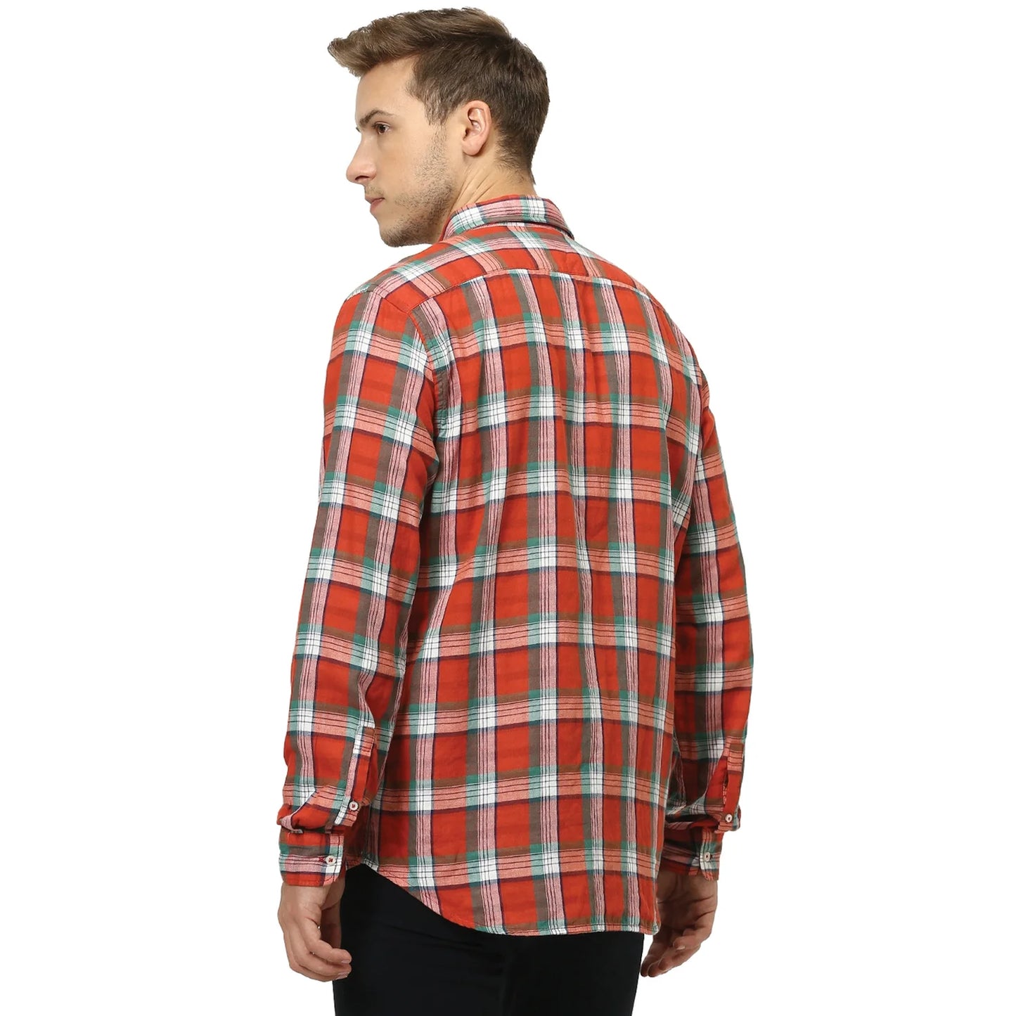Celio* Checked Regular Fit Cotton Rust Shirt