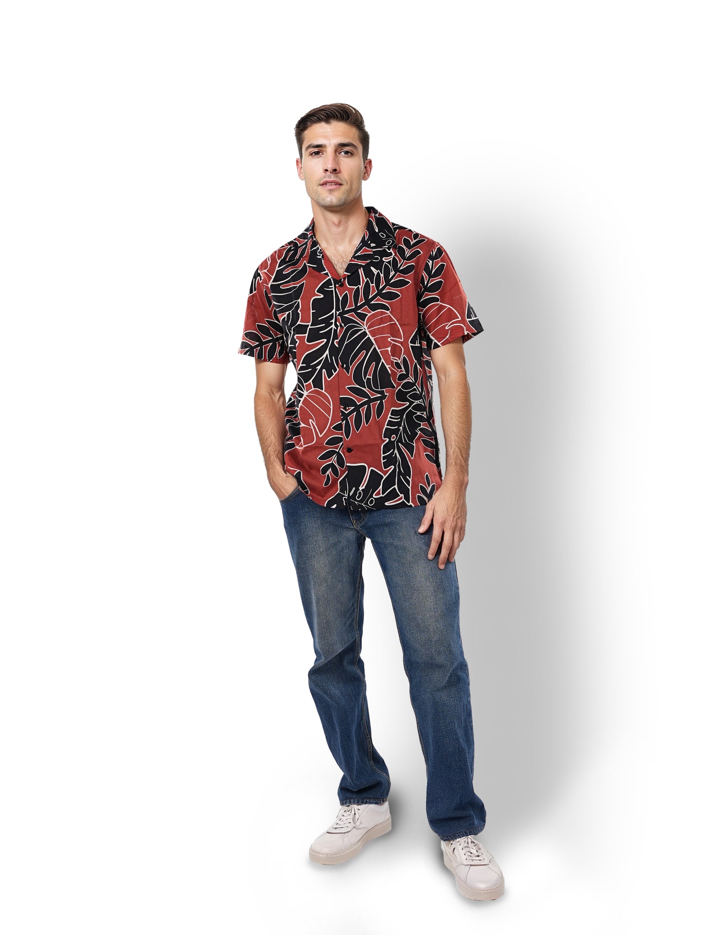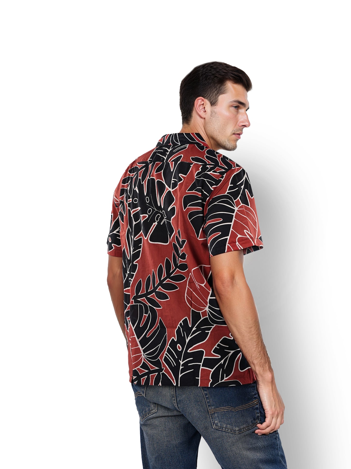Elevate your casual style with this Men Rust Cuban Collar Shirt from Celio. Made from soft cotton, it features short sleeves and a regular fit, perfect for relaxed outings. Disclaimer: All other items in the image are only for display purposes and will not be a part of the delivery content. Product colour may slightly vary due to photographic lighting sources. Country of Origin - India.