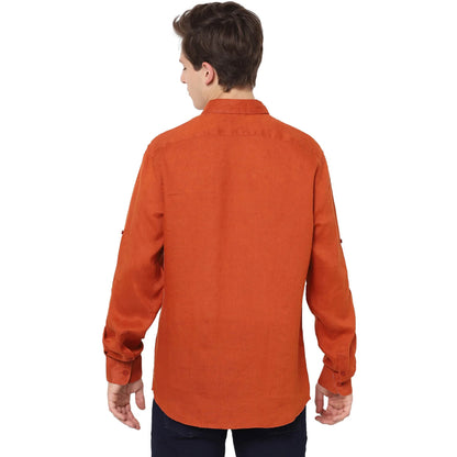 Elevate your casual wardrobe with the Celio Men's Rust Full Sleeves Shirt in Batalin Cinnamon. Crafted from comfortable linen, this rust-colored shirt is perfect for men. Disclaimer: All other items in the image are only for display purposes and will not be a part of the delivery content. Product colour may slightly vary due to photographic lighting sources. Country of Origin - India.