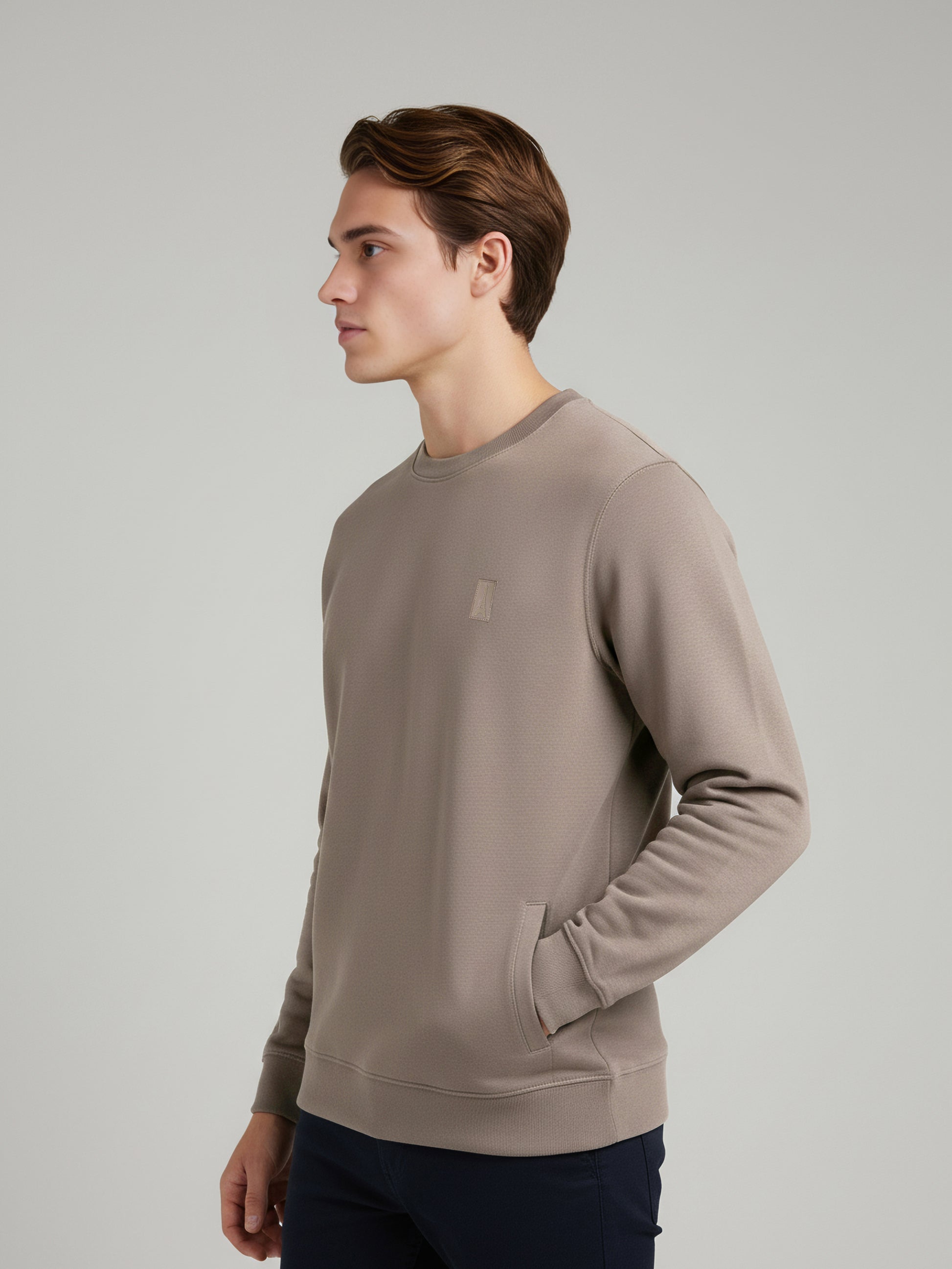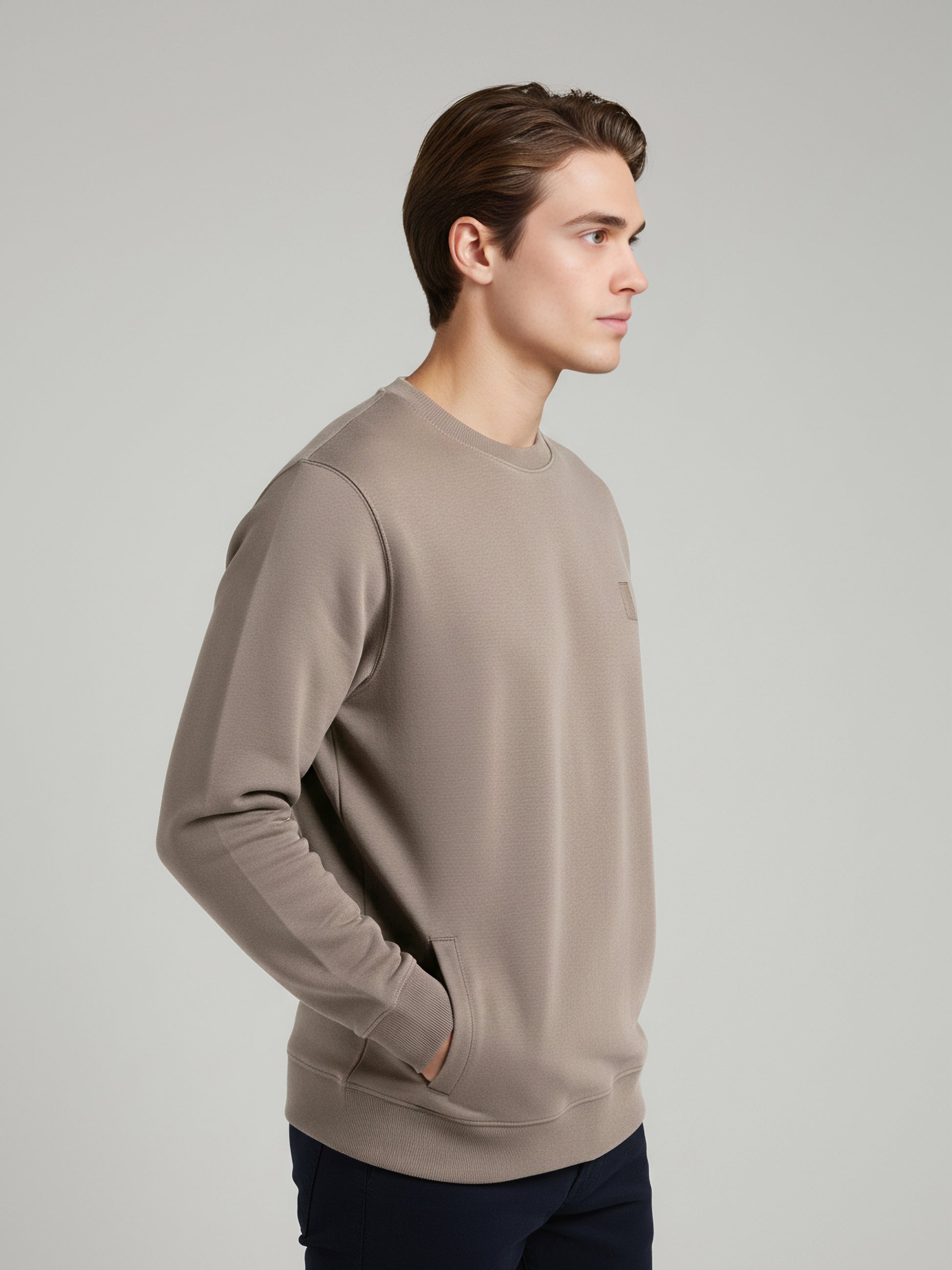 Elevate your casual wardrobe with the Celio Men Taupe Solid Sweatshirt. Made from comfortable cotton, it features long sleeves and a regular fit, perfect for everyday wear. Disclaimer: All other items in the image are only for display purposes and will not be a part of the delivery content. Product colour may slightly vary due to photographic lighting sources. Country of Origin - India.