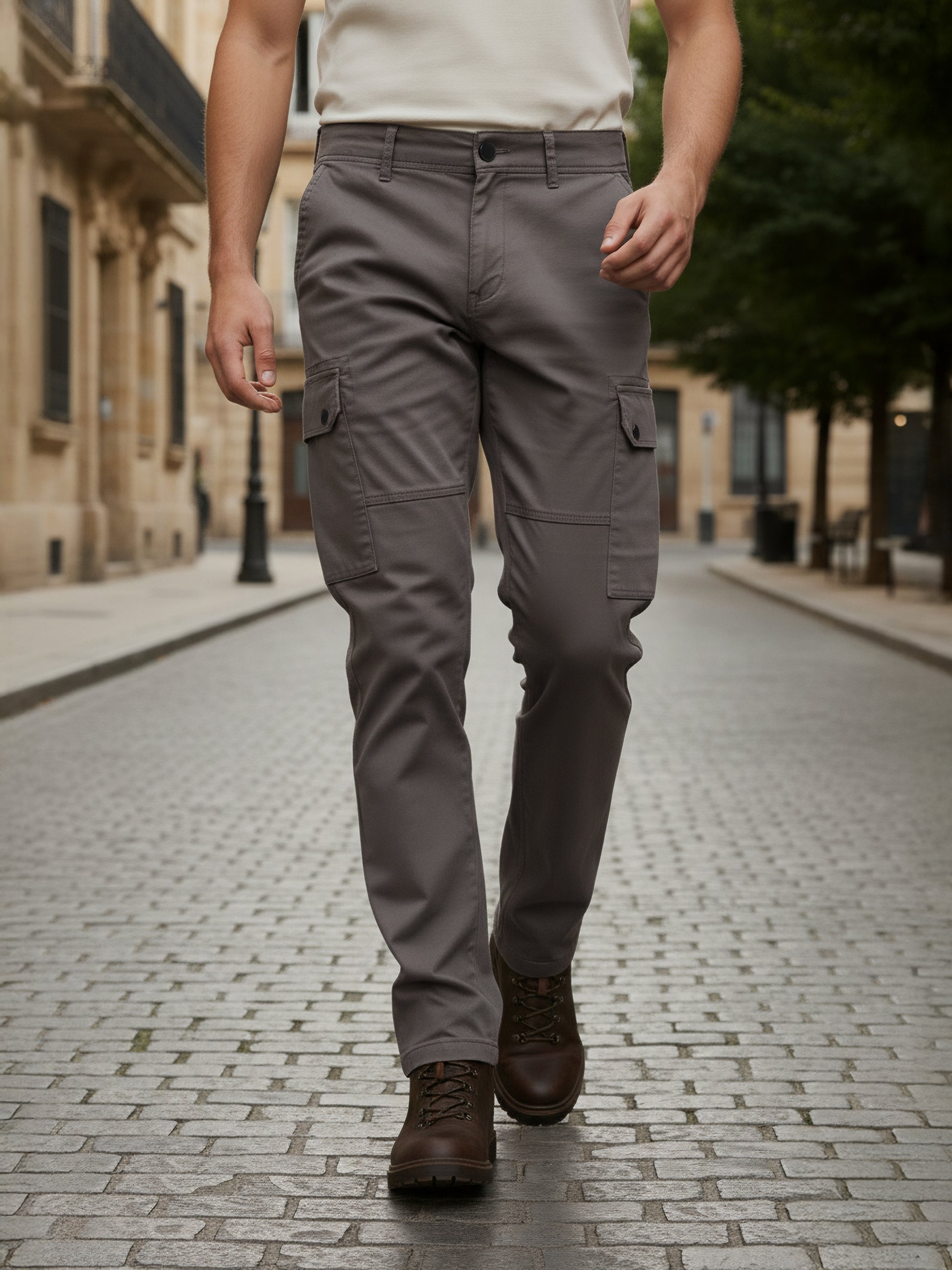 Discover comfort and style with Celio's taupe solid straight-fit cotton cargo trousers for men, perfect for casual occasions. Disclaimer: All other items in the image are only for display purposes and will not be a part of the delivery content. Product colour may slightly vary due to photographic lighting sources. Country of Origin - India.