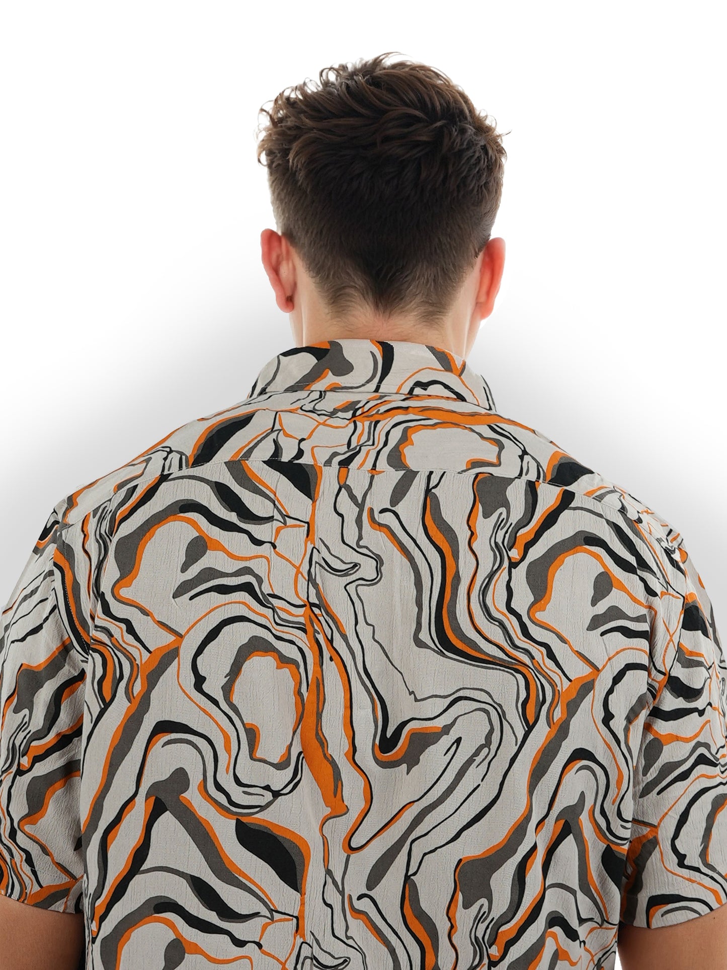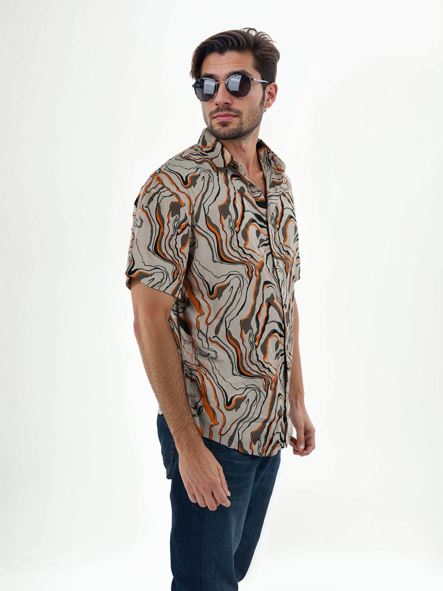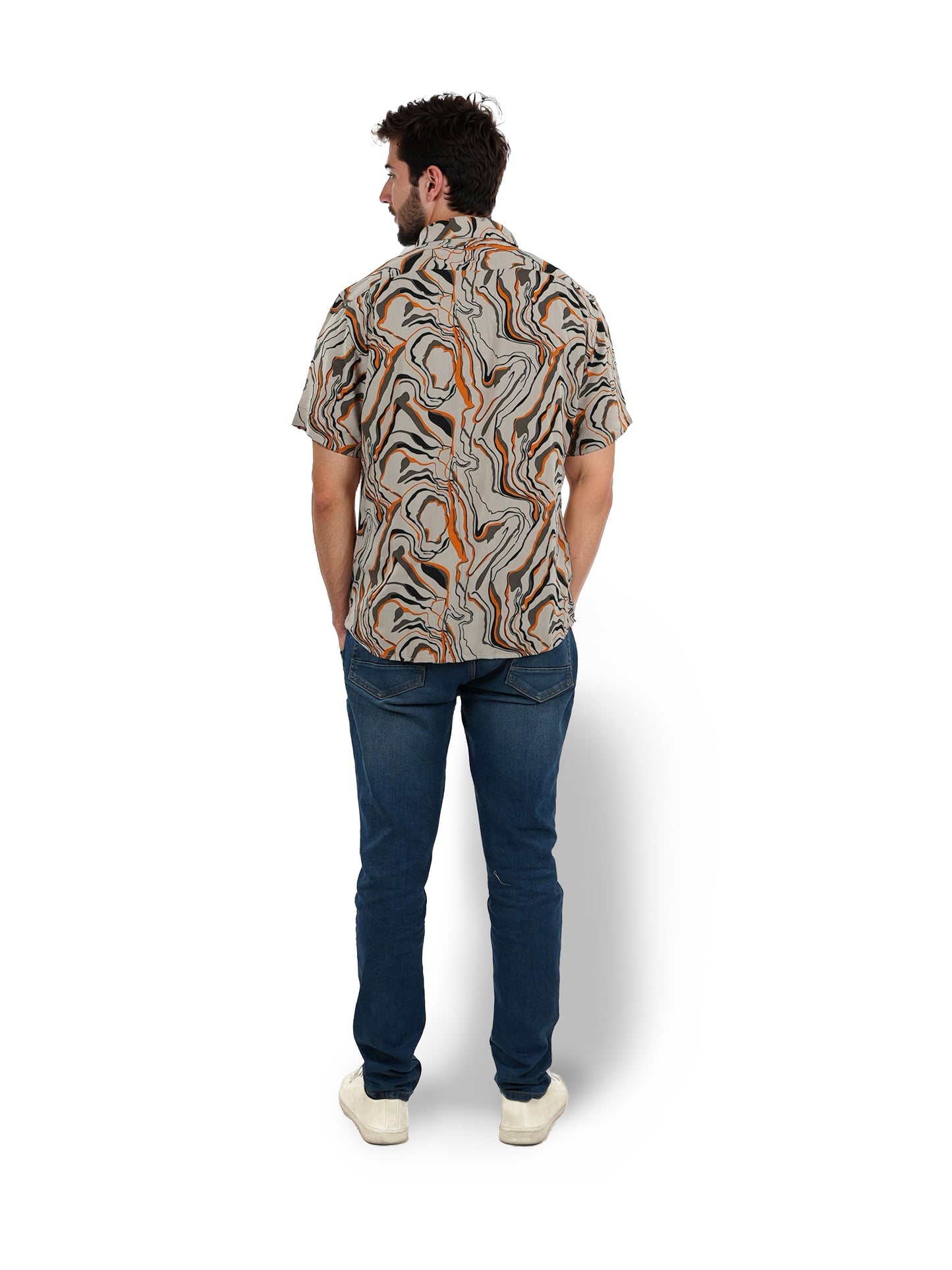 Celio* Printed Regular Fit Viscose Taupe Shirt