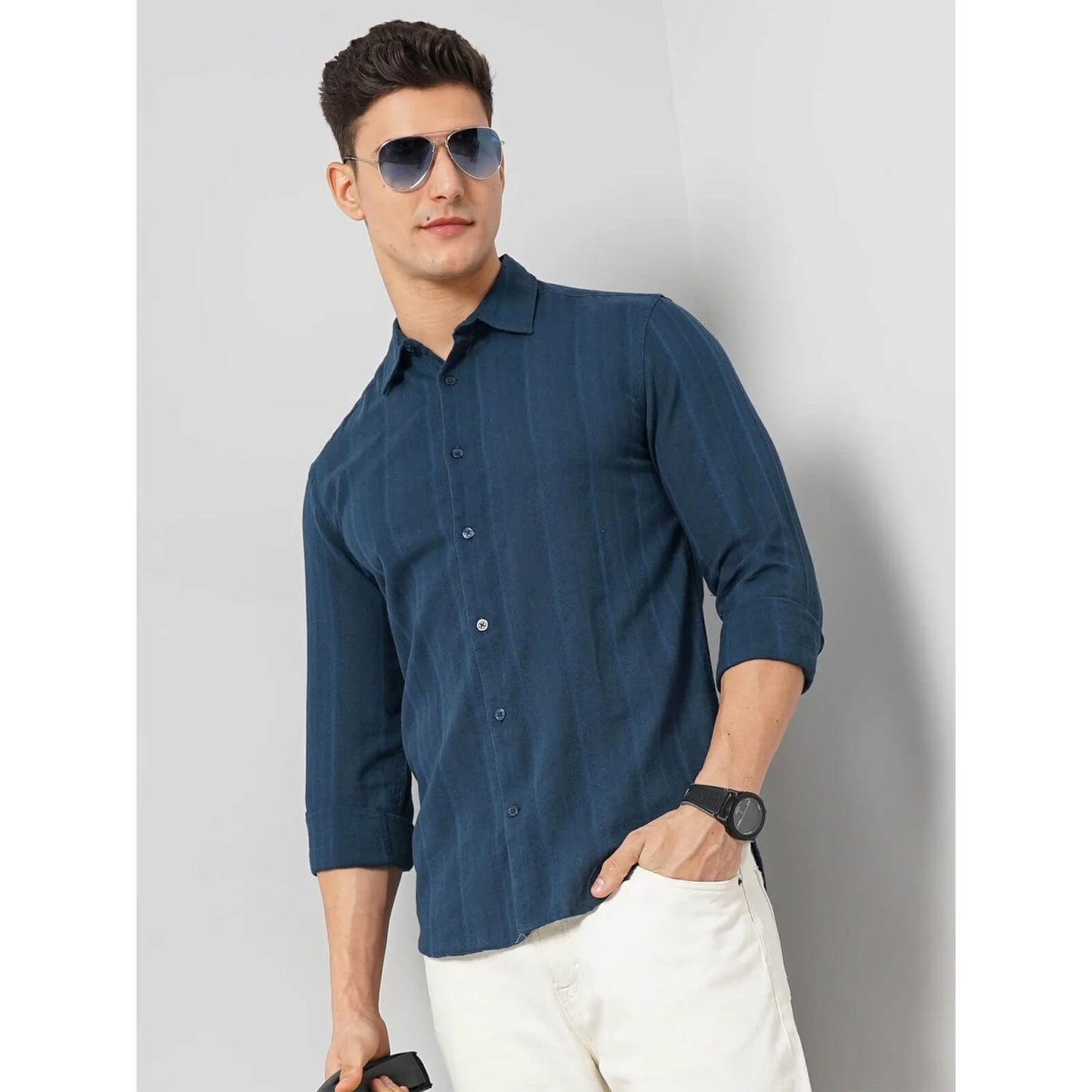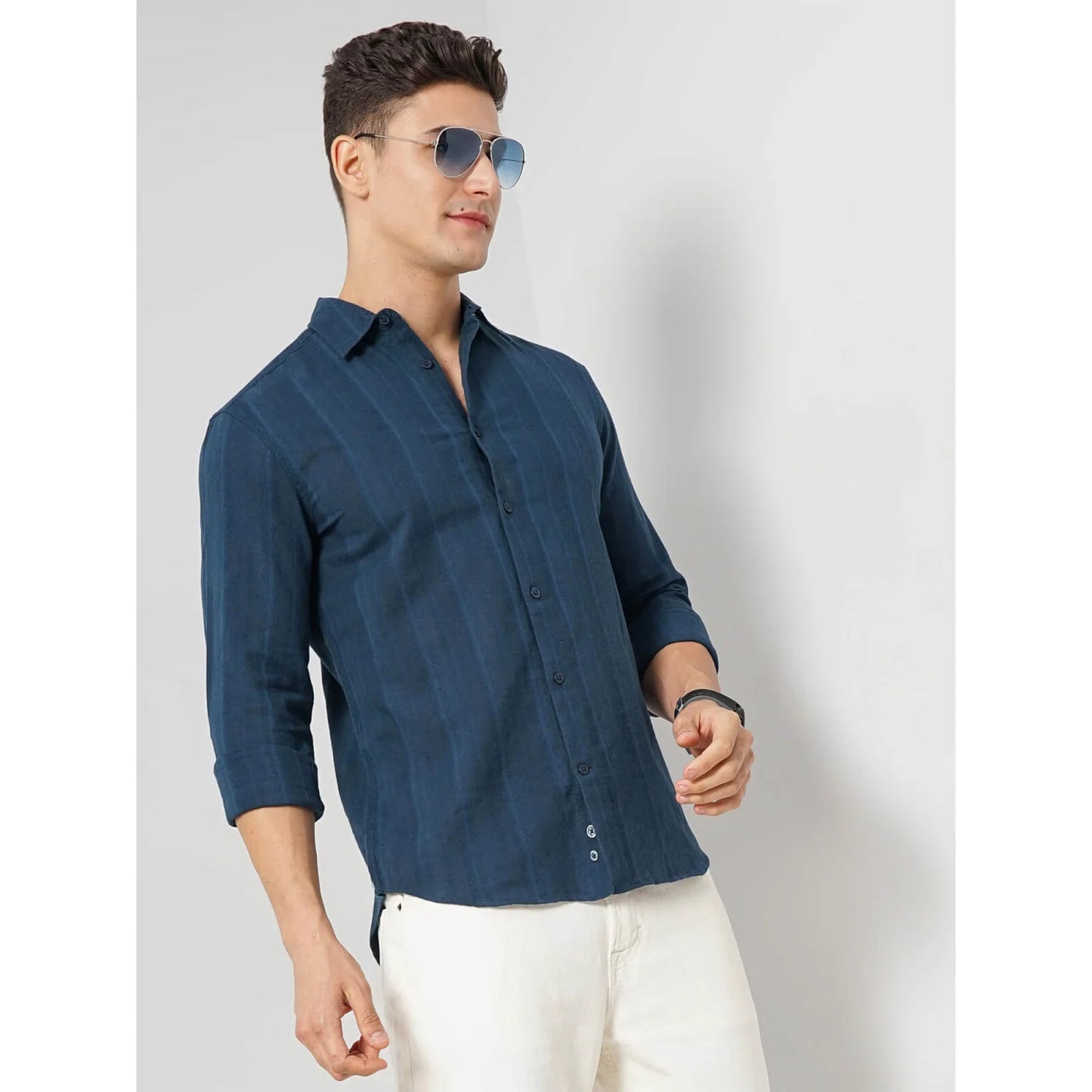 Elevate your casual wardrobe with the Celio Self-Design Teal Cotton Shirt. Made for men, this long-sleeve shirt features a stylish self-design in a refreshing teal color. Disclaimer: All other items in the image are only for display purposes and will not be a part of the delivery content. Product colour may slightly vary due to photographic lighting sources. Country of Origin - India.