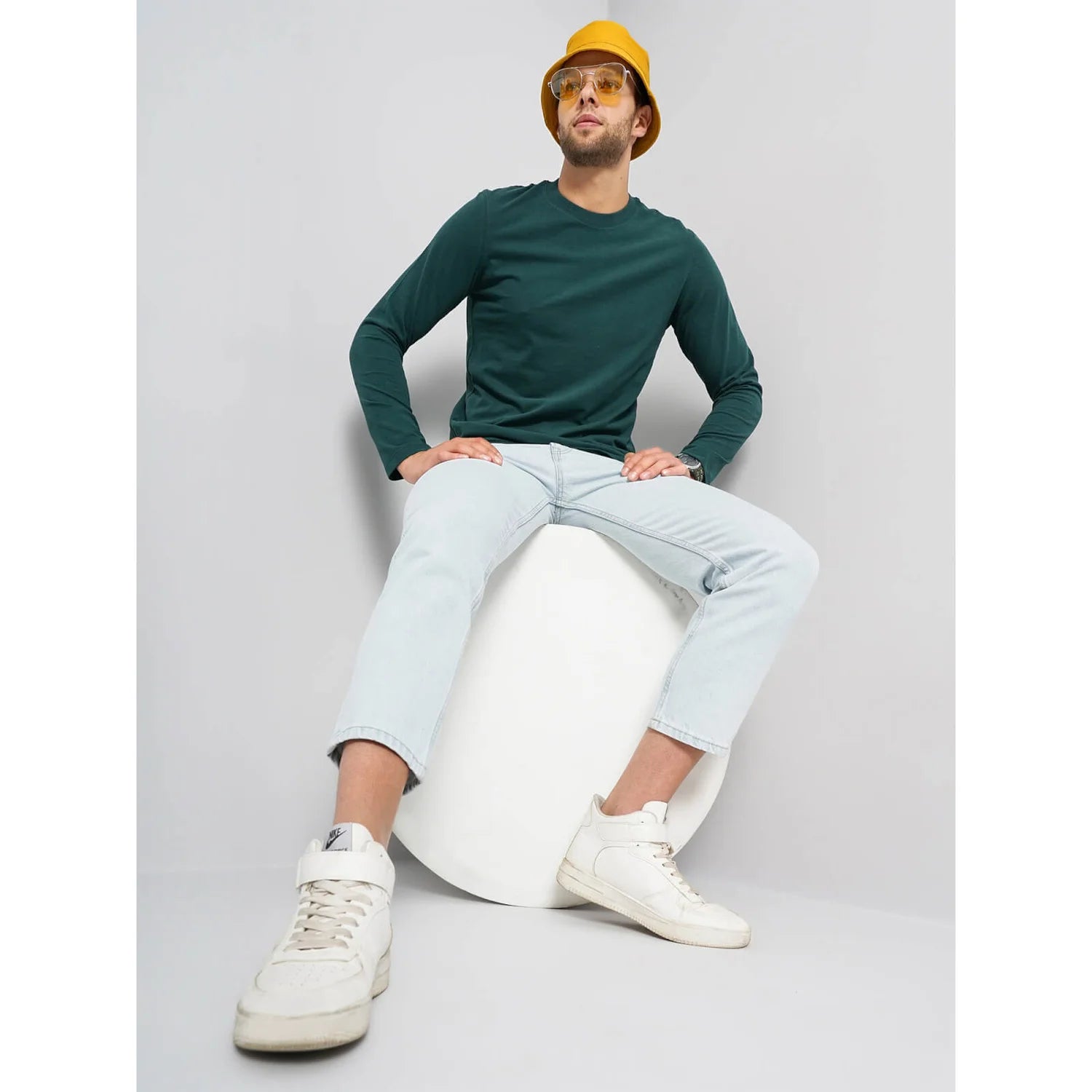 Upgrade your casual wardrobe with the Celio Teal Solid Cotton T-Shirt, featuring long sleeves and crafted from soft cotton for ultimate comfort. Perfect for men seeking style. Disclaimer: All other items in the image are only for display purposes and will not be a part of the delivery content. Product colour may slightly vary due to photographic lighting sources. Country of Origin - India.