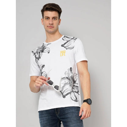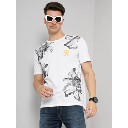 Celio* Abstract Regular Fit Cotton White T-Shirt