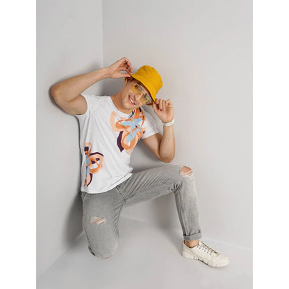 Celio* Abstract Regular Fit Cotton White T-Shirt