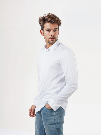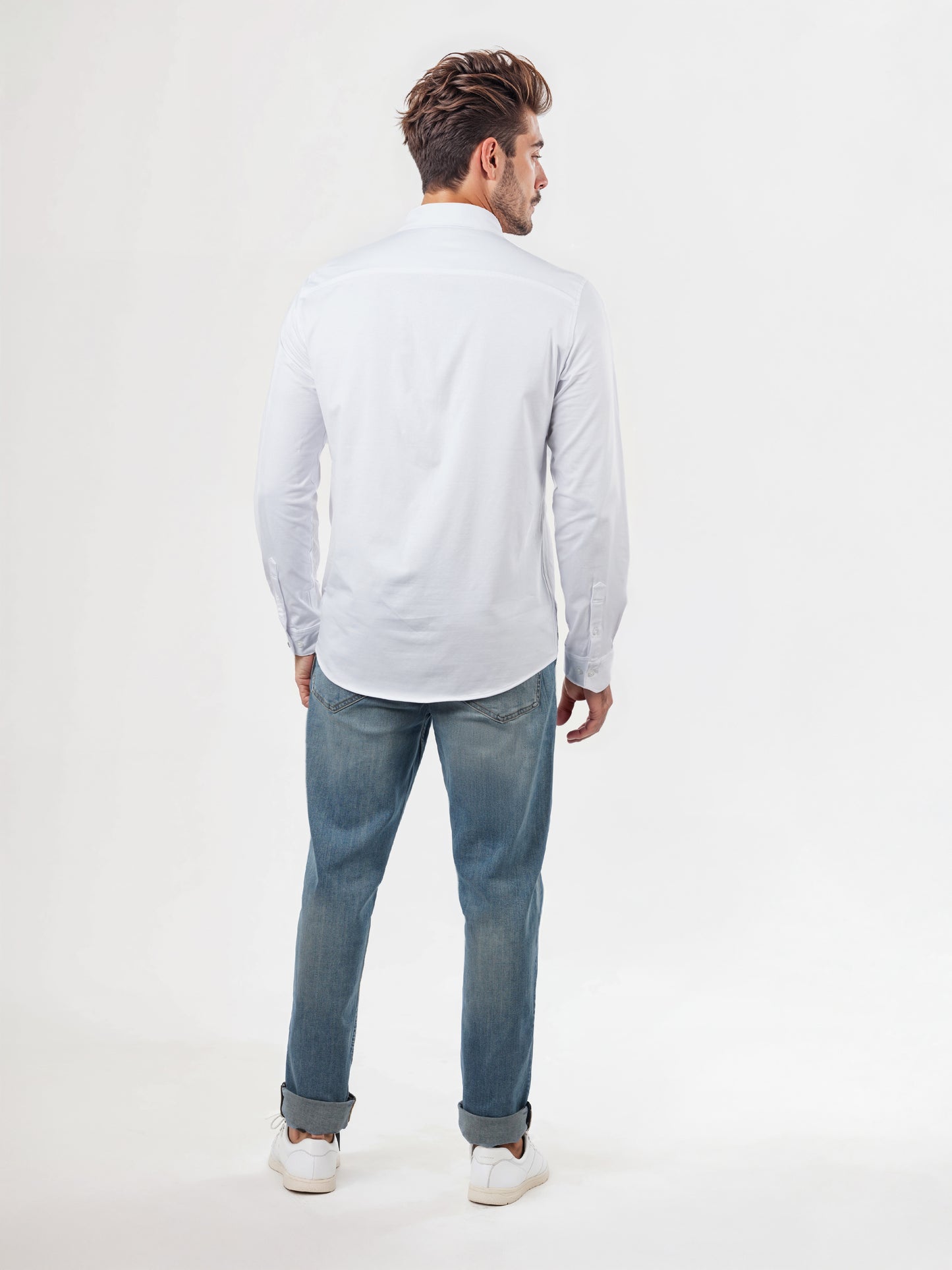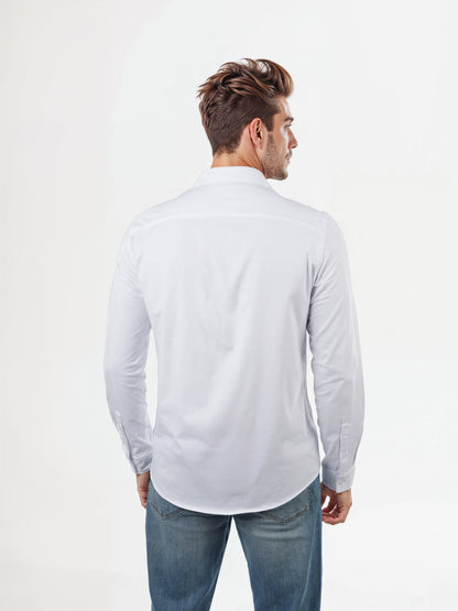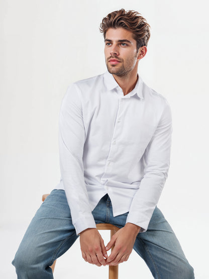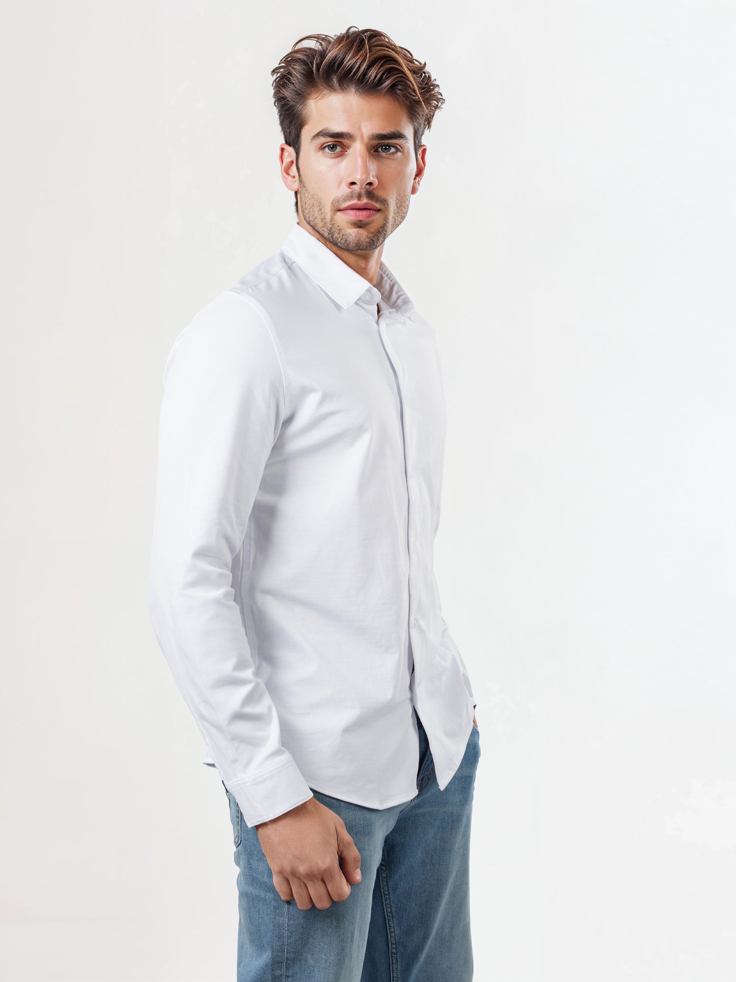 Shop the Celio Men White Solid Shirt, a perfect blend of comfort and style. Crafted from cotton-blend fabric, it features long sleeves, ideal for casual occasions. Disclaimer: All other items in the image are only for display purposes and will not be a part of the delivery content. Product colour may slightly vary due to photographic lighting sources. Country of Origin - India.