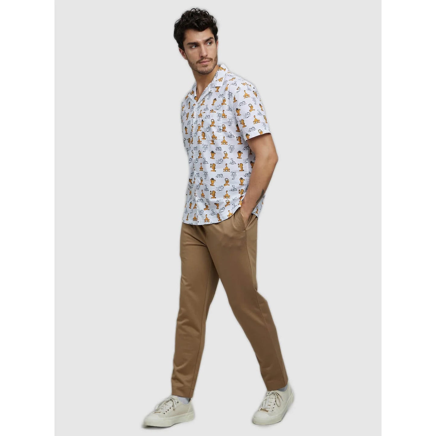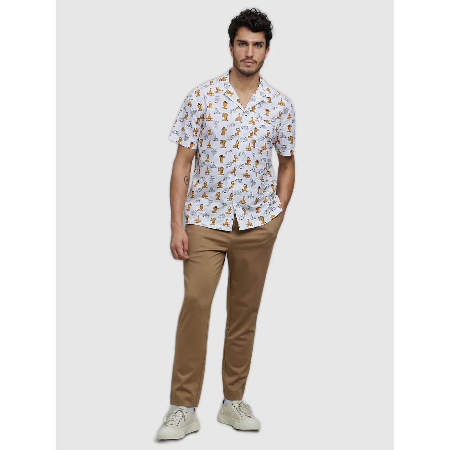 Add a playful twist to your casual wardrobe with the GARFIELD Off-White Printed Cotton Shirt. Made from breathable cotton, this shirt offers a cool and comfortable fit for all-day wear. The off-white color gives it a fresh, clean look, while the fun Garfield print brings a dose of humor and charm to your outfit. Featuring short sleeves and a relaxed fit, this shirt is perfect for laid-back outings, whether you're hanging out with friends or running errands. The print showcases little Garfield in all his goofy, sarcastic glory, making it an ideal choice for fans of the iconic cat. His mischievous antics and laid-back attitude come to life, adding a playful edge to this versatile piece. Pair it with your favorite jeans or shorts for an effortlessly stylish and fun look. Whether you're at a casual gathering or just enjoying a quiet day, this shirt lets you showcase your love for Garfield in the most stylish way possible. Disclaimer: All other items in the image are only for display purposes and will not be a part of the delivery content. Product colour may slightly vary due to photographic lighting sources. Country of Origin - India.