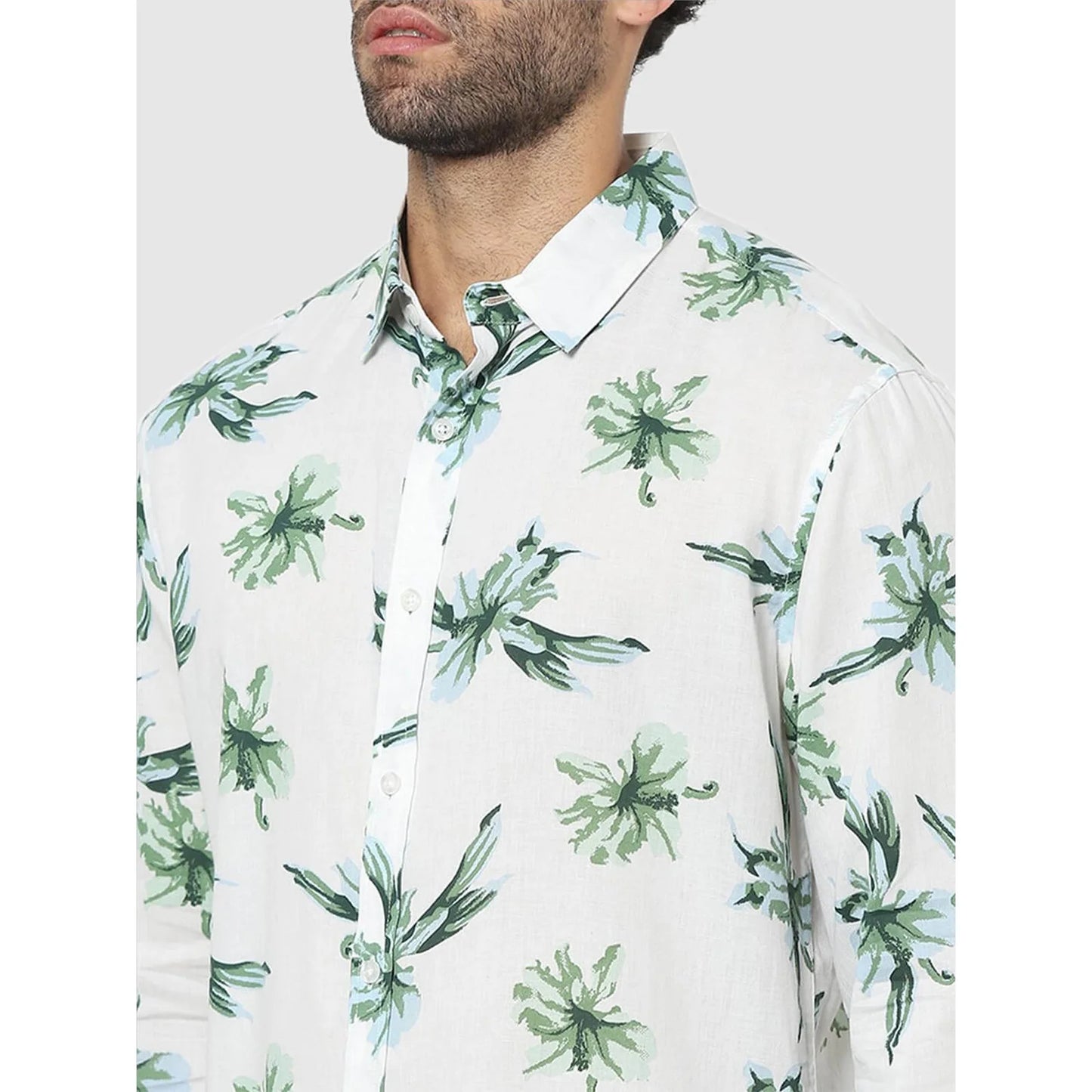 This Celio White Floral Slim Fit Shirt for men features a stylish floral pattern on premium cotton, ideal for casual occasions. It comes with long sleeves for a sophisticated look. Disclaimer: All other items in the image are only for display purposes and will not be a part of the delivery content. Product colour may slightly vary due to photographic lighting sources. Country of Origin - India.