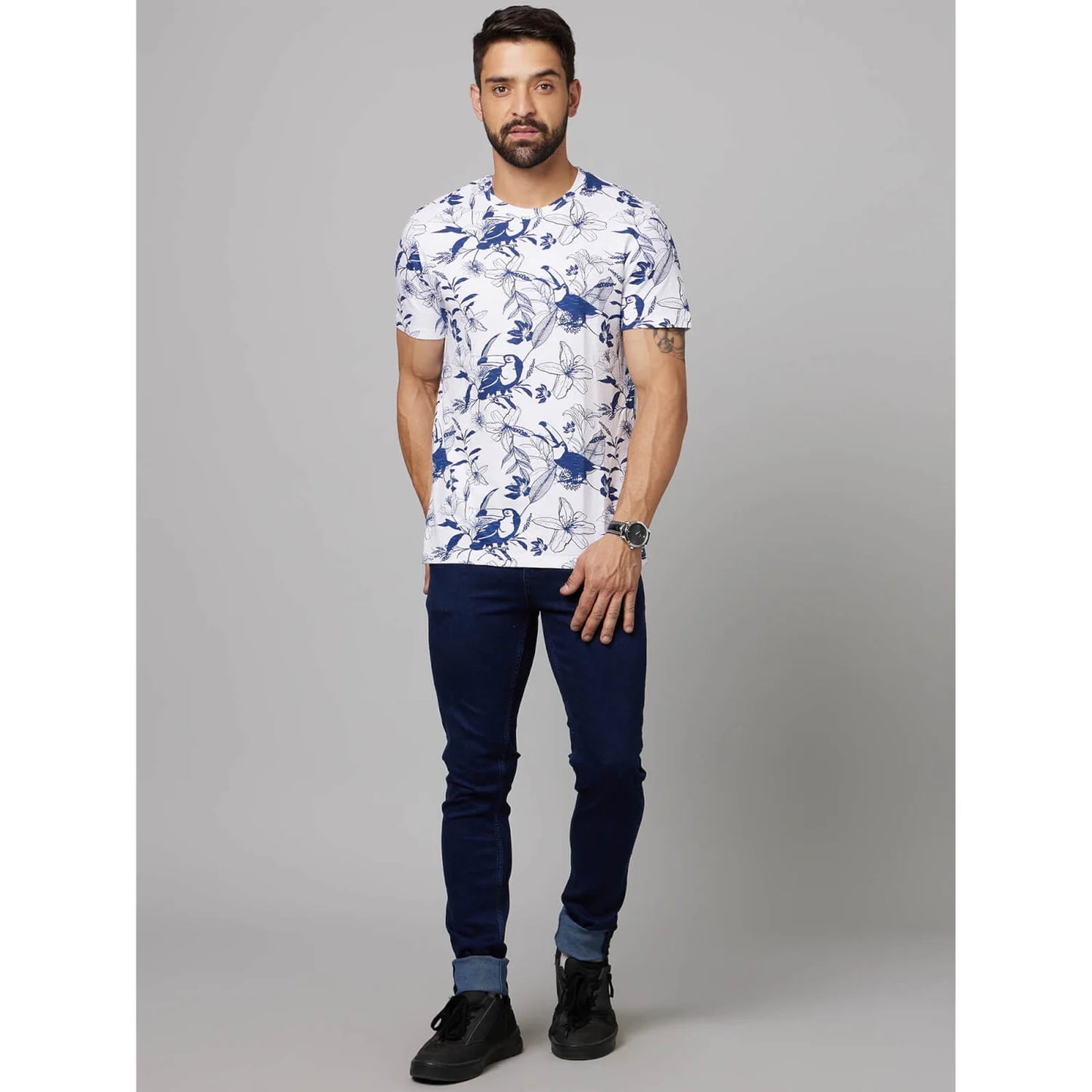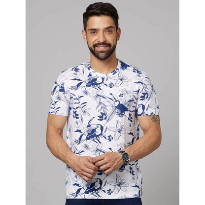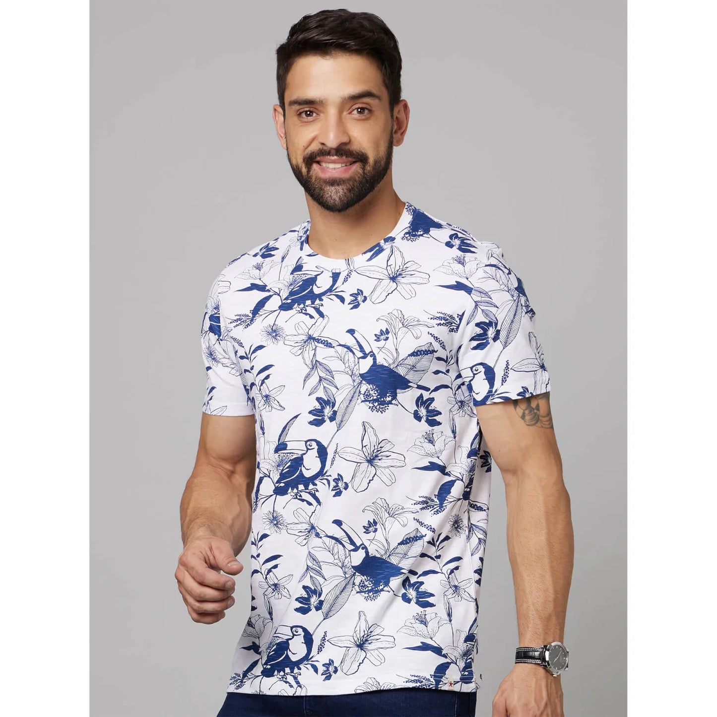 Celio* Floral Regular Fit Cotton White T-Shirt