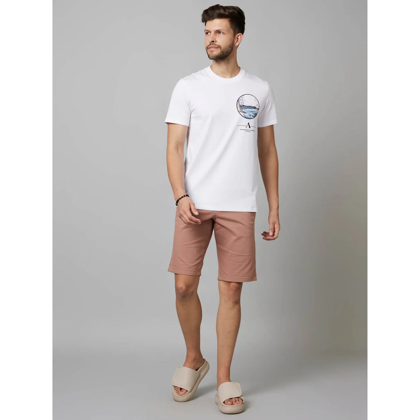 Step up your casual style with Celio's APOH White Graphic Printed Cotton T-shirt, designed for men who appreciate comfort and cutting-edge fashion. Crafted from soft, breathable cotton, this tee offers an effortlessly comfortable fit, perfect for any laid-back occasion. The fresh white base makes an ideal canvas for striking graphic prints, giving the T-shirt a bold and trendy vibe. The design is sleek and modern, featuring unique elements that embody Japan's dynamic, innovative spirit. With a classic round neck and short sleeves, this T-shirt is a versatile staple that pairs effortlessly with jeans, shorts, or joggers. Whether you're heading out for a casual meetup, a day of shopping, or just enjoying a relaxed weekend, this graphic tee is the perfect way to make a statement while staying comfortable. Showcase your appreciation for Japanese-inspired fashion and art with this stylish, must-have T-shirt. Disclaimer: All other items in the image are only for display purposes and will not be a part of the delivery content. Product colour may slightly vary due to photographic lighting sources. Country of Origin - India.