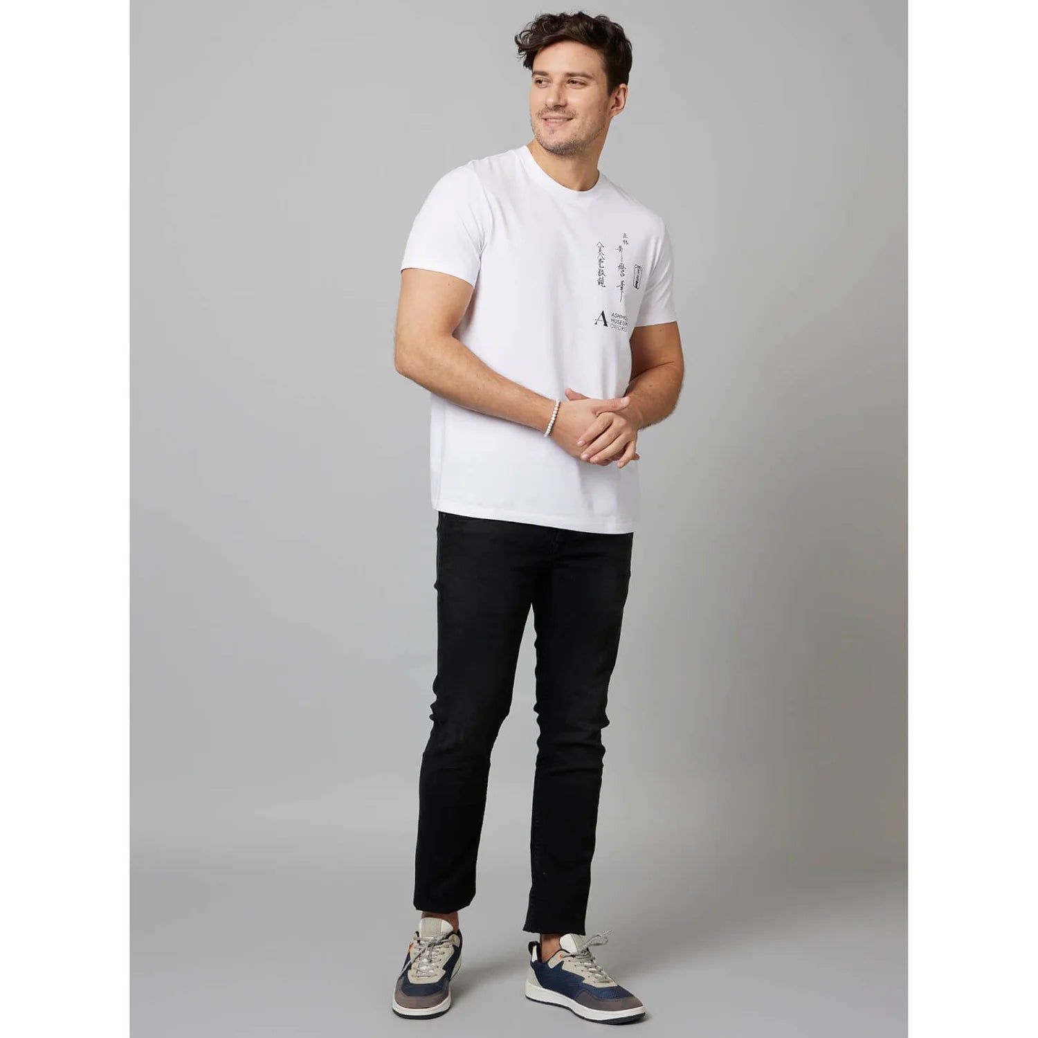 Elevate your casual style with the APOH White Graphic Printed Cotton T-shirt from Celio, designed for fans who want to showcase their love for anime in a modern and stylish way. Made from soft, breathable cotton, this T-shirt offers all-day comfort, making it perfect for casual outings or relaxed With its classic round neck and short sleeves, this T-shirt is versatile and easy to pair with jeans, shorts, or joggers. Whether hanging out with friends or enjoying a weekend adventure, this tee lets you express your fandom easily. Disclaimer: All other items in the image are only for display purposes and will not be a part of the delivery content. Product colour may slightly vary due to photographic lighting sources. Country of Origin - India.