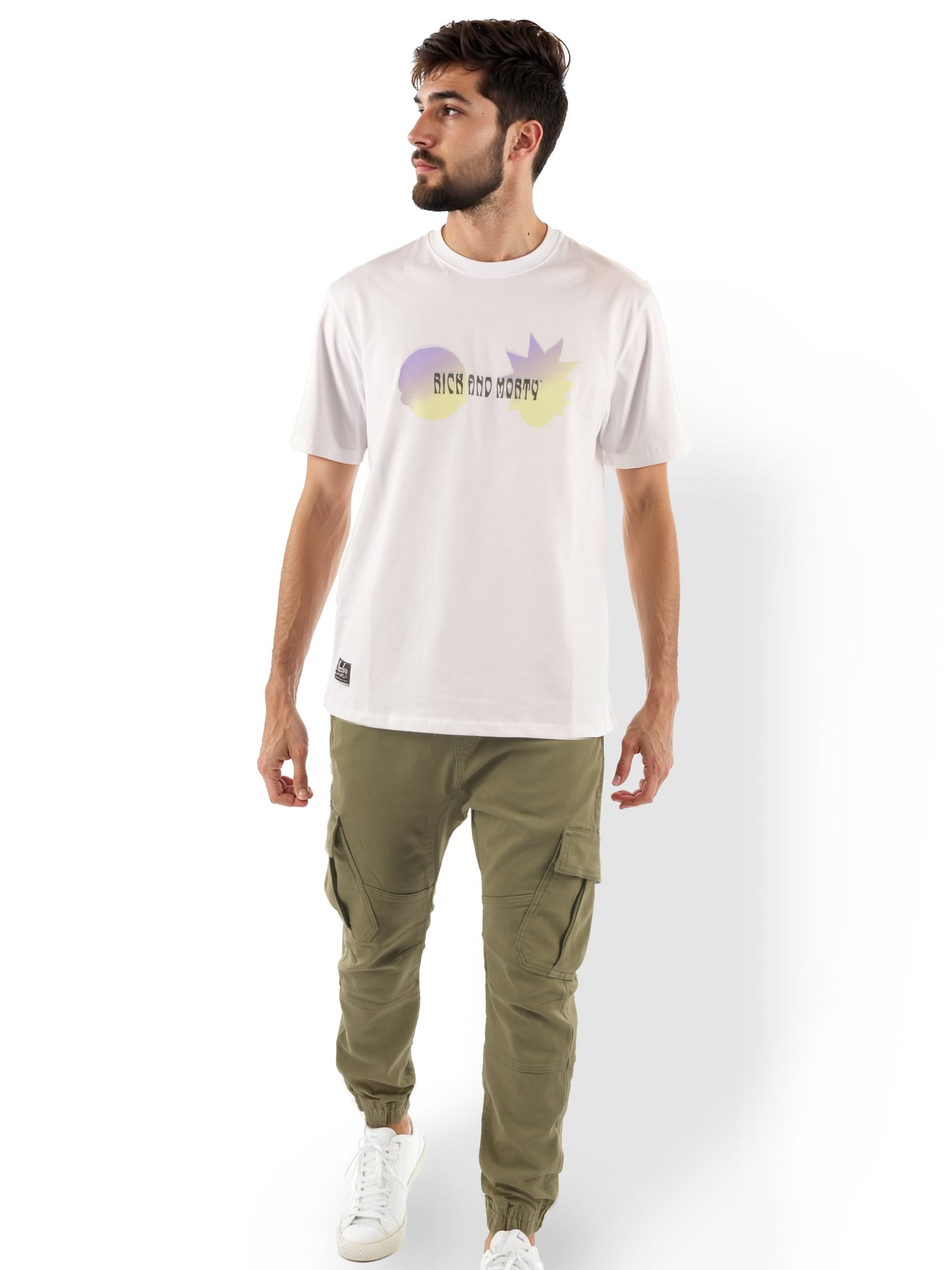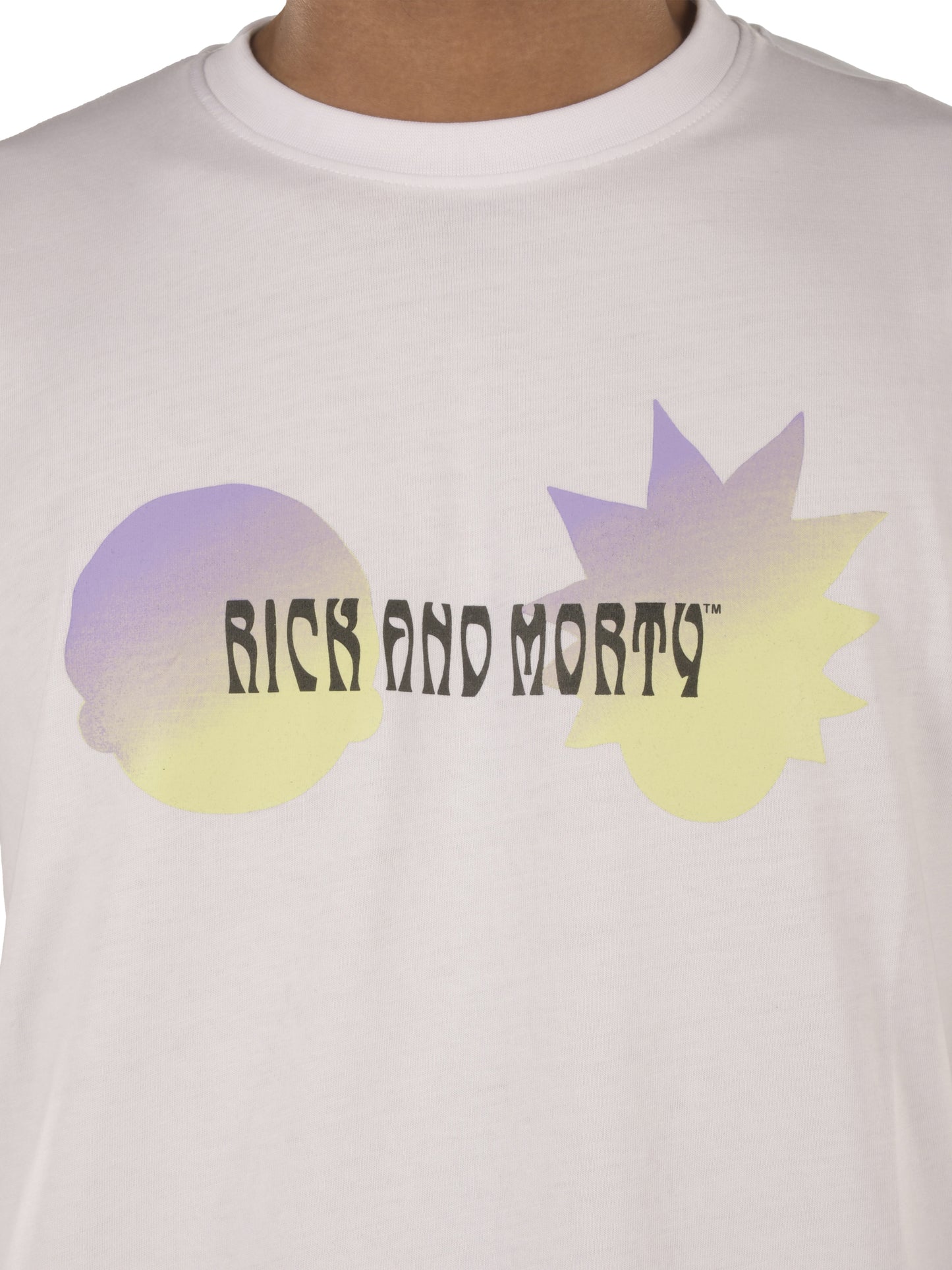 Upgrade your casual wardrobe with the Rick & Morty Men’s White Printed Cotton T-shirt, blending comfort with fandom. This shirt, crafted from premium soft cotton, brings a boxy fit and short sleeves that perfectly capture laid-back style. The design, inspired by US sportswear, features a unique lenticular patch showcasing your favorite Rick and Morty characters, adding a dynamic 3D effect. With UV exposure, a hidden element of the design is revealed, bringing the shirt to life with an unexpected twist. Adding a pop-culture flair, the embroidered "Wubba Lubba Dub Dub" phrase makes this T-shirt an instant conversation starter among fans. The round neck and classic white color make it an ideal match for any casual outfit, while the bold design ensures it stands out in any season. Pair it with jeans for a relaxed, trendy look that resonates with your favorite show's irreverent spirit. Disclaimer: All other items in the image are only for display purposes and will not be a part of the delivery content. Product colour may slightly vary due to photographic lighting sources. Country of Origin - India.